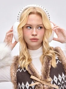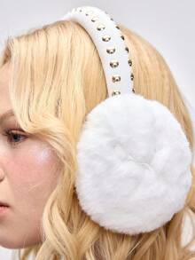 Kawaii 1pc Minimalist White Solid Plush Earmuffs, Cute Wing & Star Decor Ear Warmers, Foldable Winter Ear Muffs For Outdoor Activities