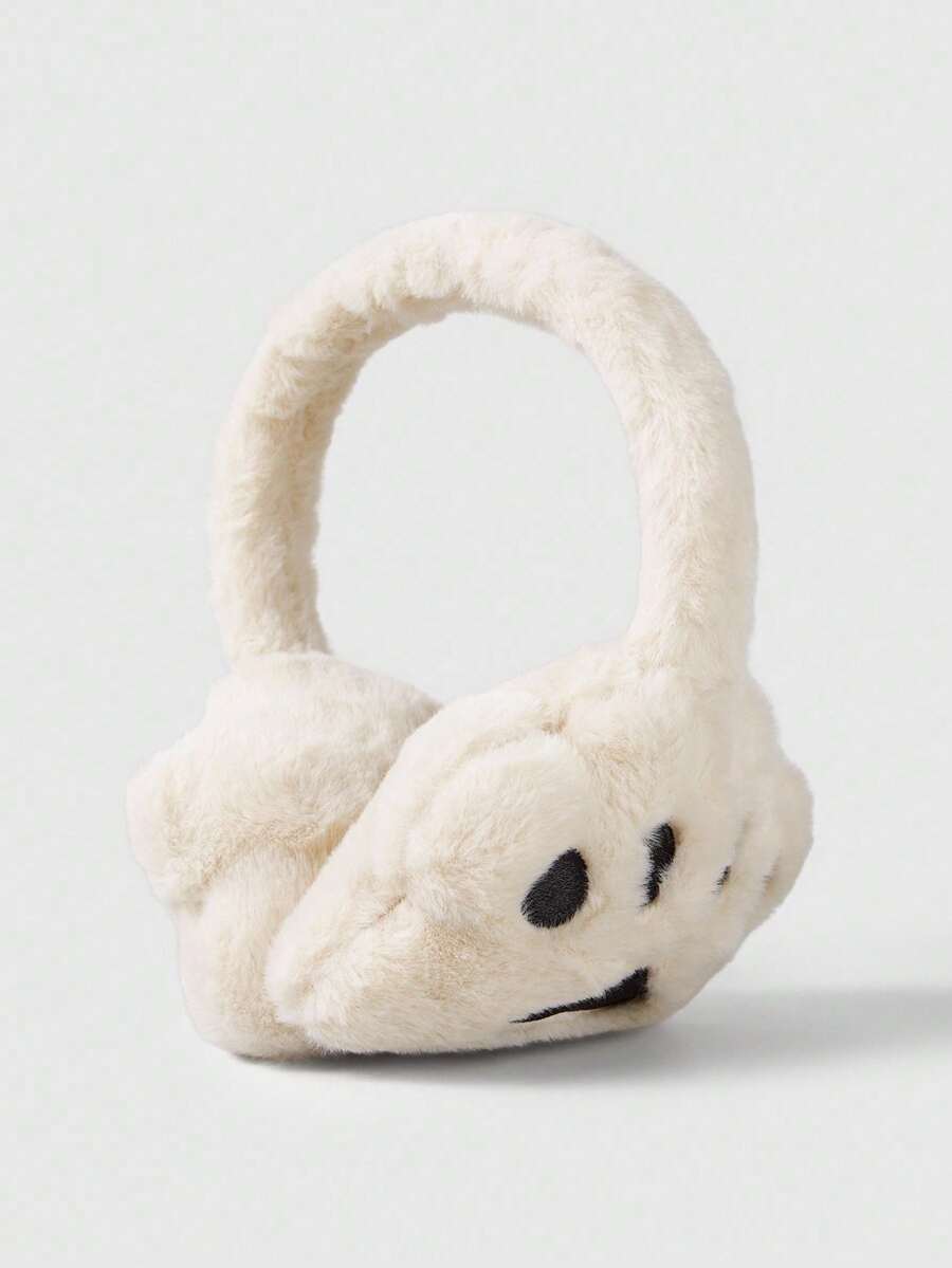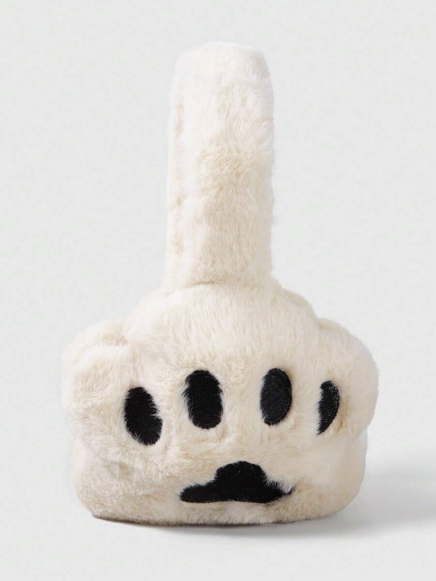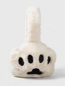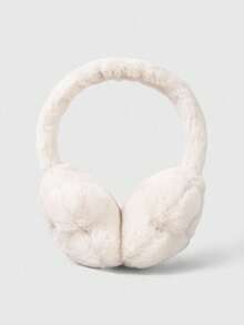 Kawaii 1pc Minimalist White Solid Plush Earmuffs, Cute Wing & Star Decor Ear Warmers, Foldable Winter Ear Muffs For Outdoor Activities