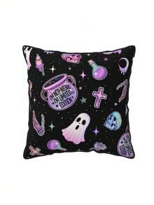Anime 1pc One Dark Fantasy-Style Pillowcase, Two-Dimensional Punk Style, Comic Style Pillowcase,Suitable For Ghost Decorations. It Can Create A Thrilling Atmosphere And Serves As A Mysterious Gift.