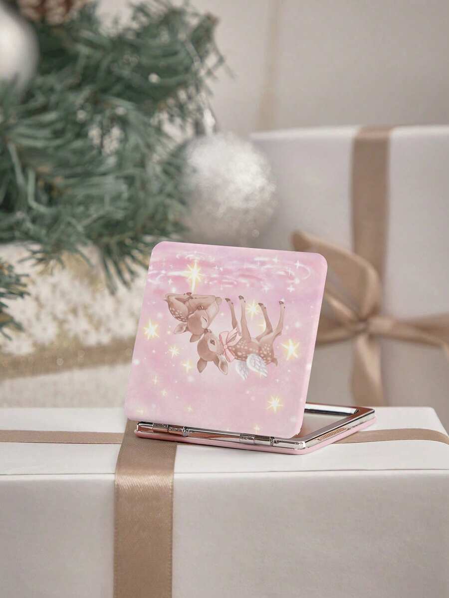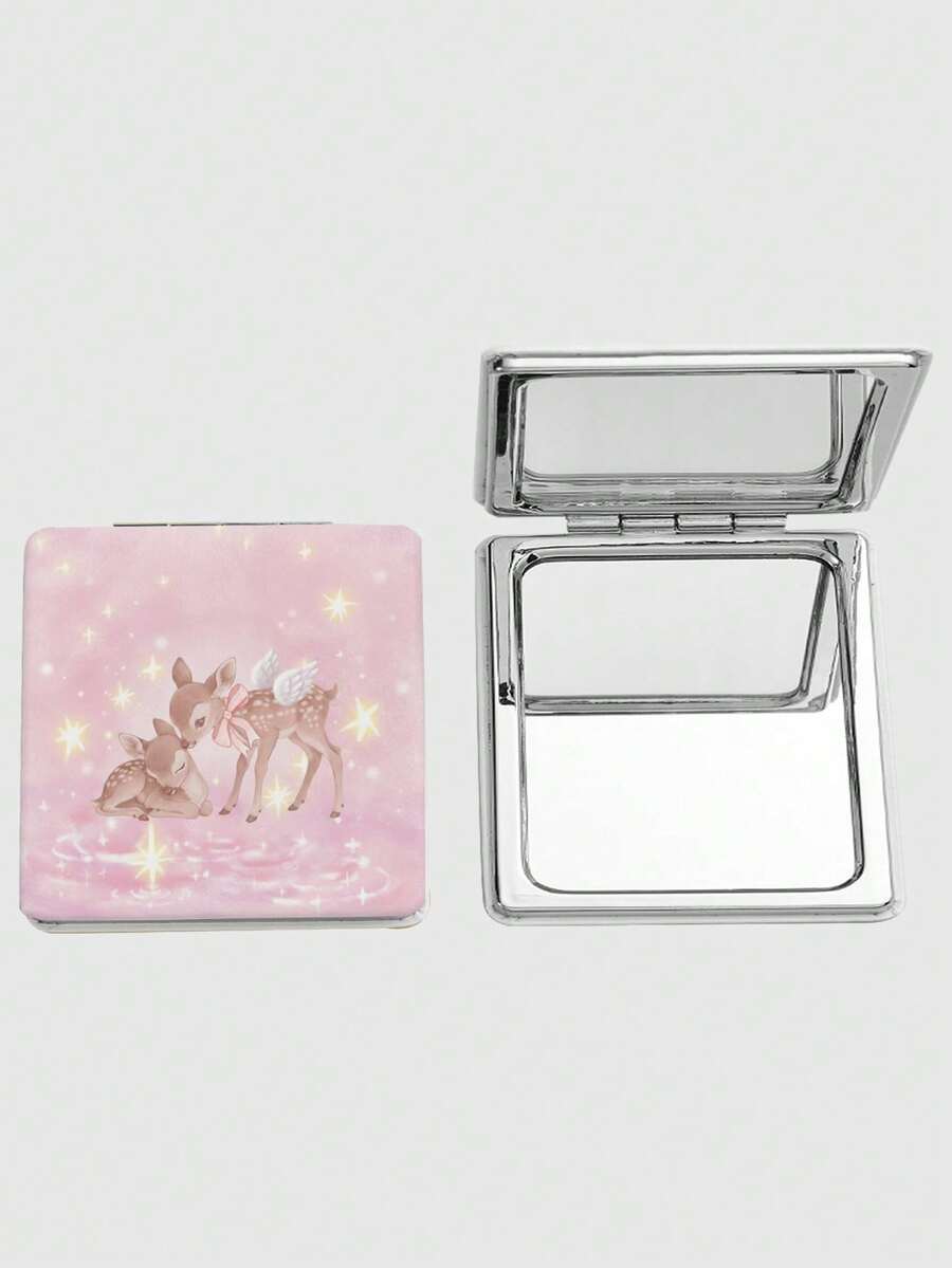 Kawaii 1pc Pink Bow & Heart Print Square Makeup Mirror, Portable Hand Held Mirror For Girls (Pattern Placement Random)
