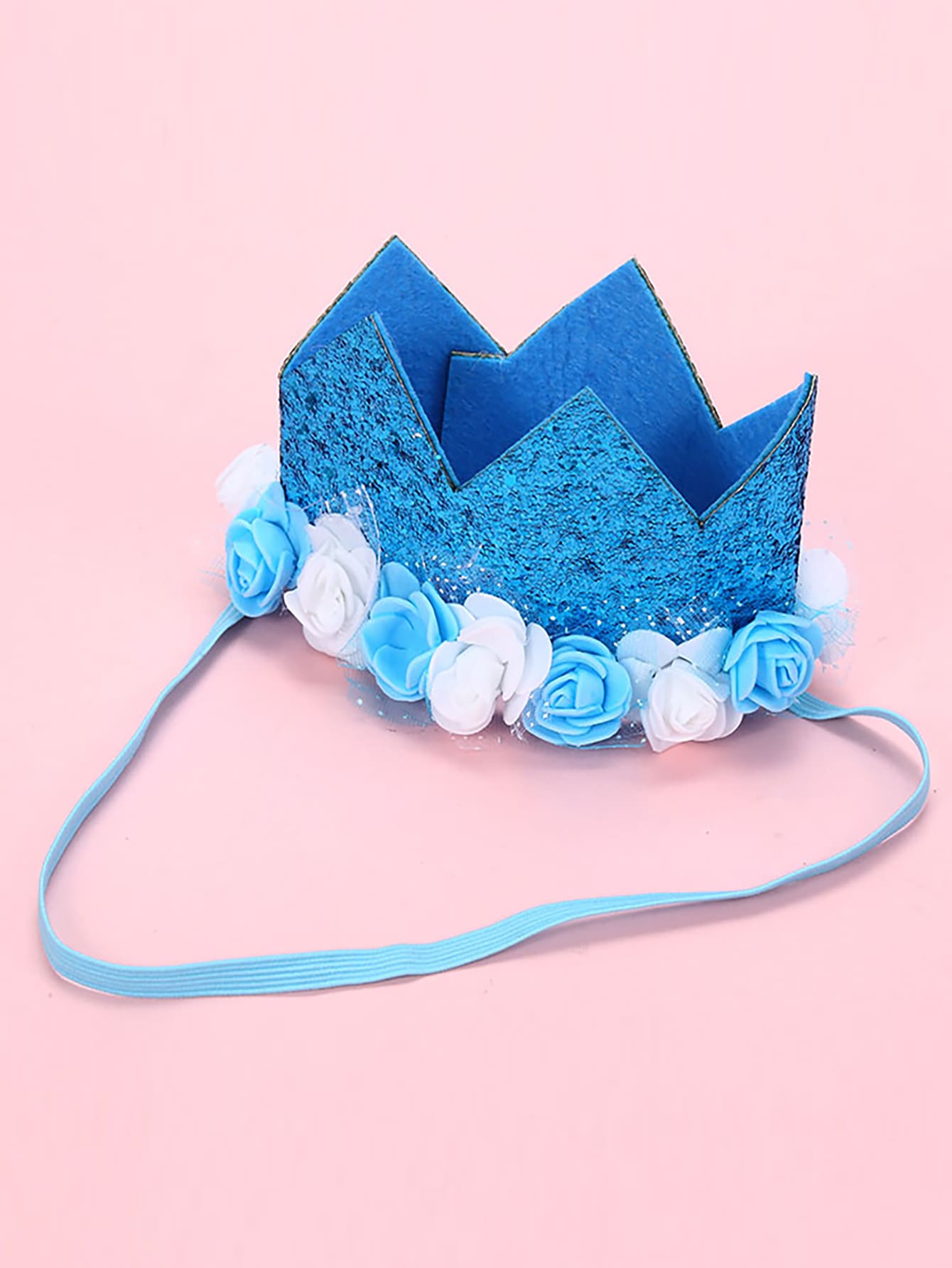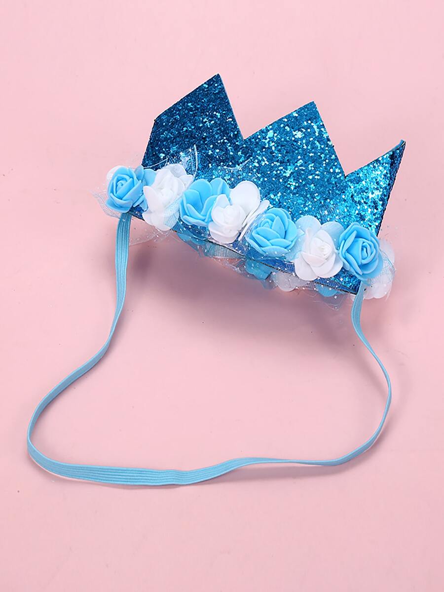 1pc Pu Leather & Sequin Material Flower Decor Crown For Kids And Pets Party Birthday Prop