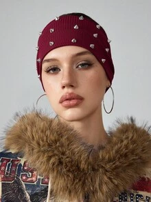 Grunge Punk 1pc Punk Fashion Rivet Knitted Headband, Dark Minimalist Style Burgundy Solid Wide Headband, Sports Yoga Sweat-Absorbent Headband, Daily Personalized Versatile Hair Accessory