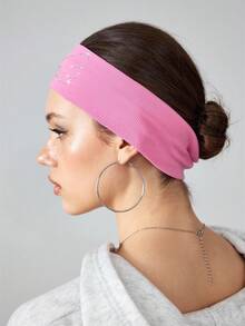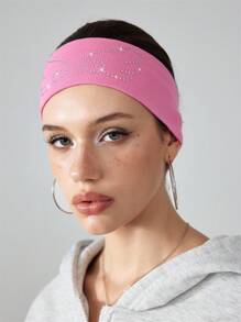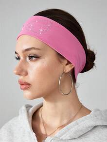 Grunge Punk 1pc Punk Style Wing Pattern Rhinestone Knitted Headband, Minimalist Solid Pink Headband, Sweat-Absorbent Sports Yoga Headband, Versatile Daily Fashion Accessory