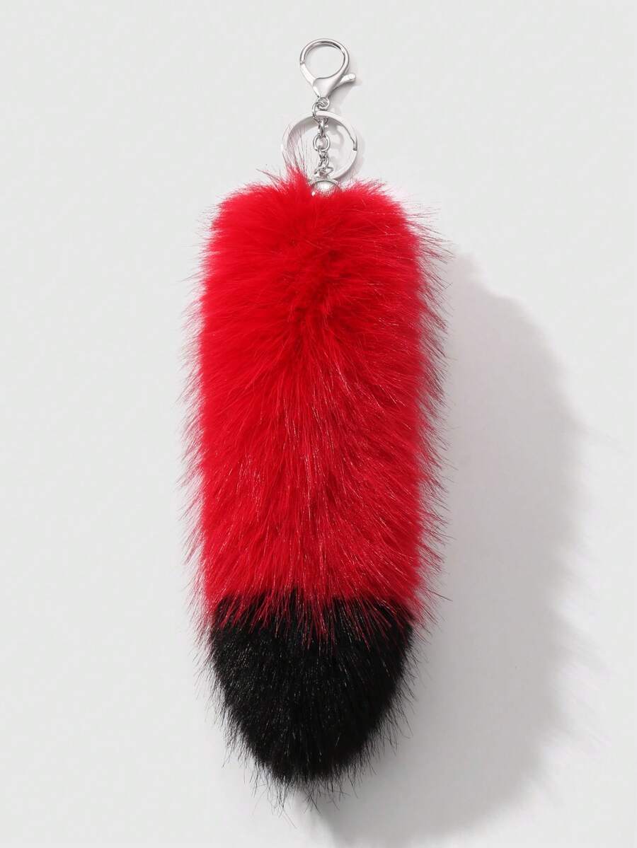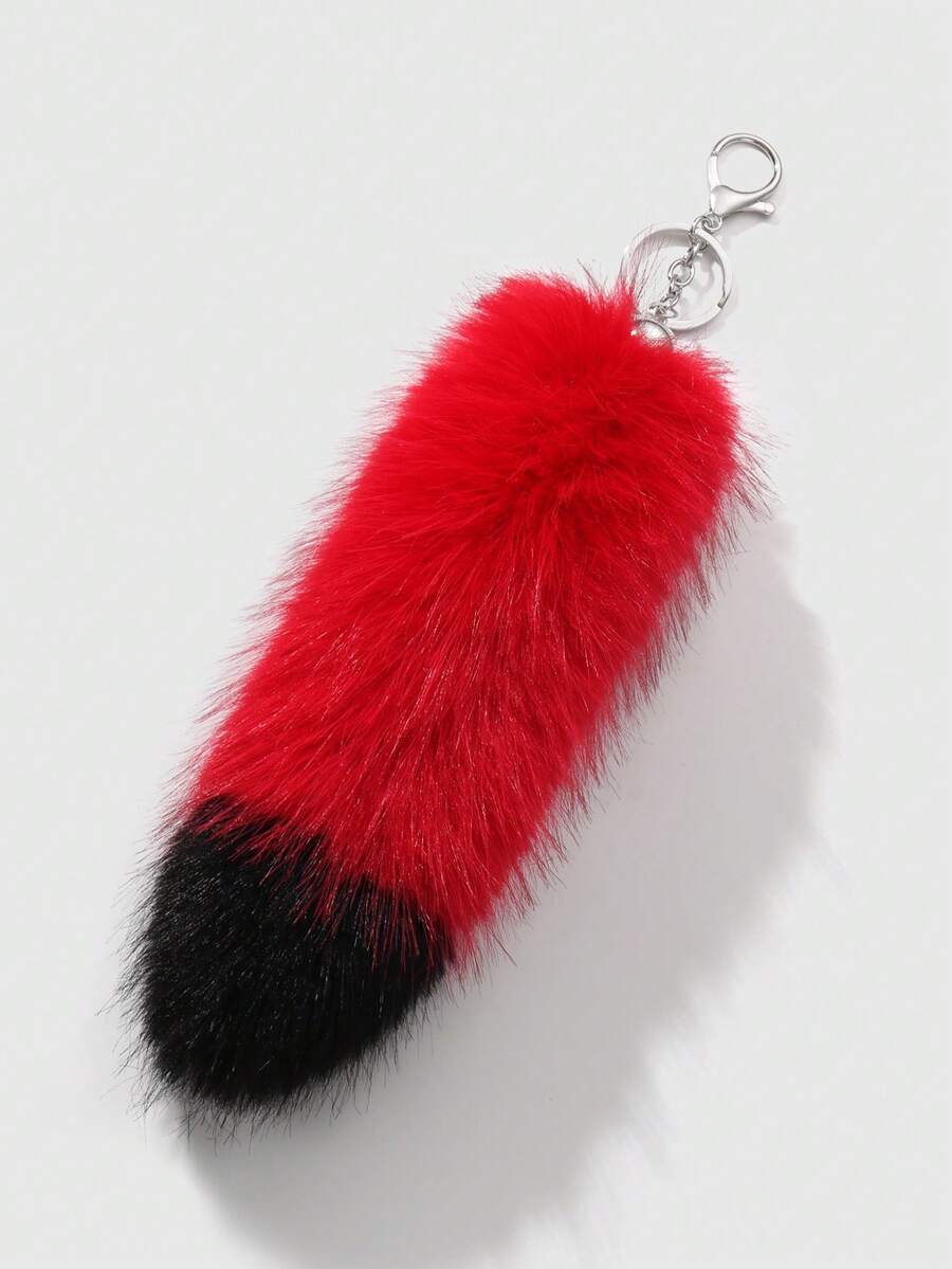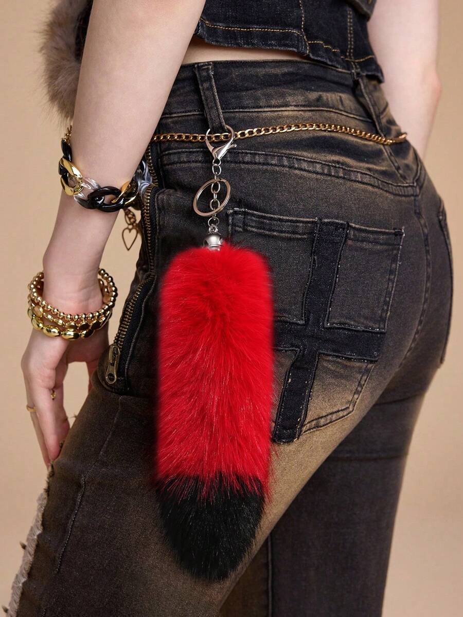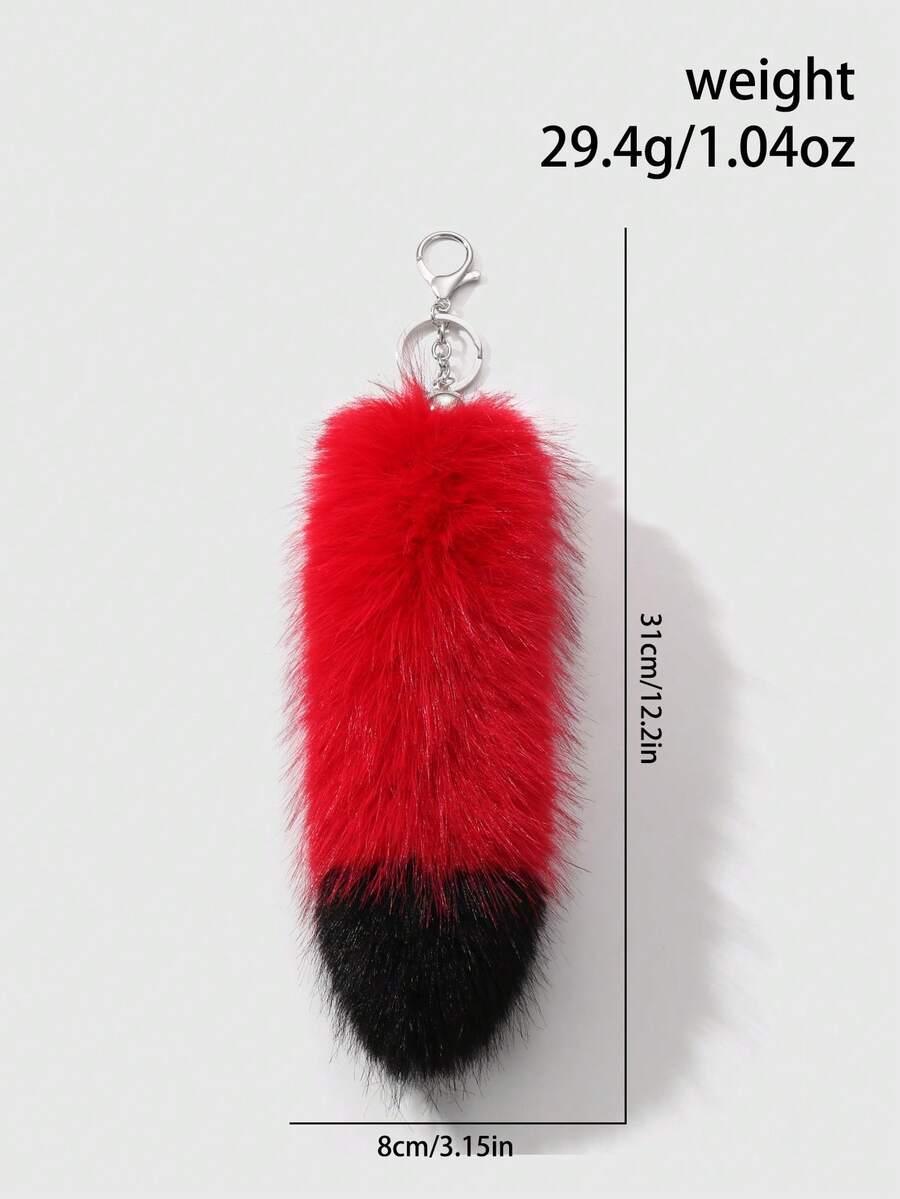 1pc Retro Goth Style Gradient Red & Black Faux Fur Fox/Nine-Tailed Fox Tail Keychain, Suitable For Cosplay, Performance, Decoration, Daily Wear, Gift For Women, Girls, Anime Fans