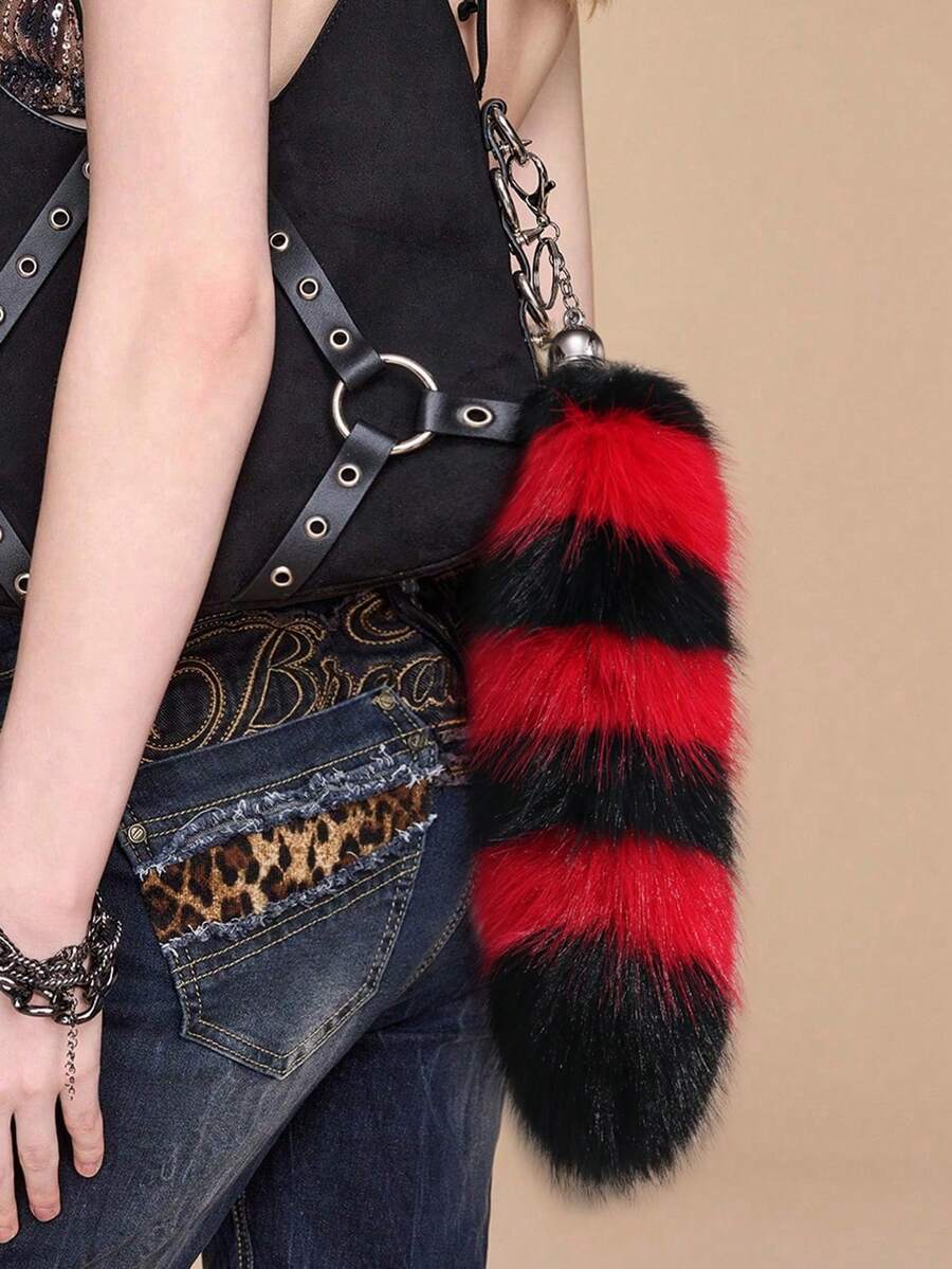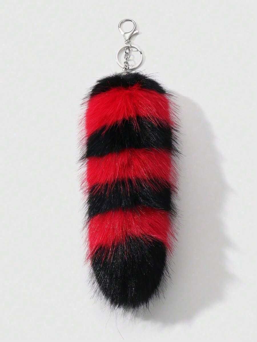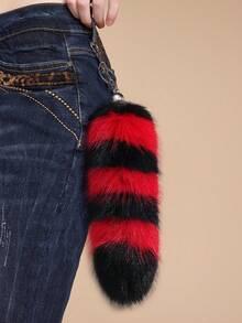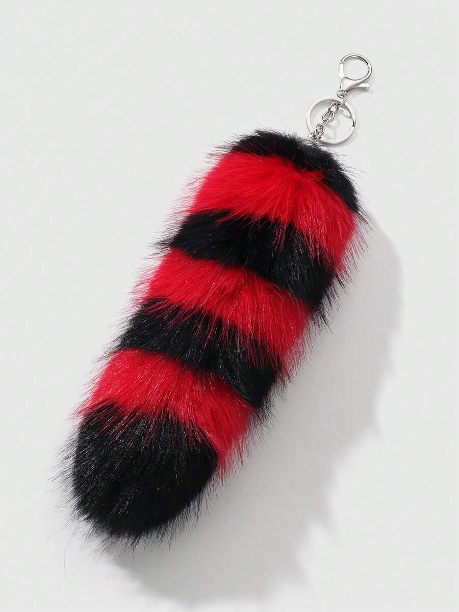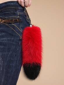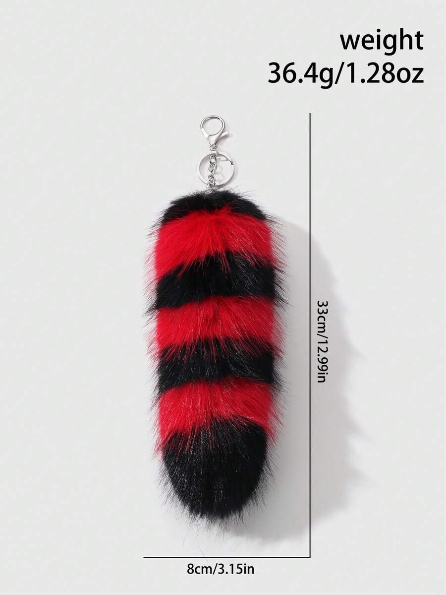 1pc Retro Goth Style Gradient Red & Black Faux Fur Fox/Nine-Tailed Fox Tail Keychain, Suitable For Cosplay, Performance, Decoration, Daily Wear, Gift For Women, Girls, Anime Fans