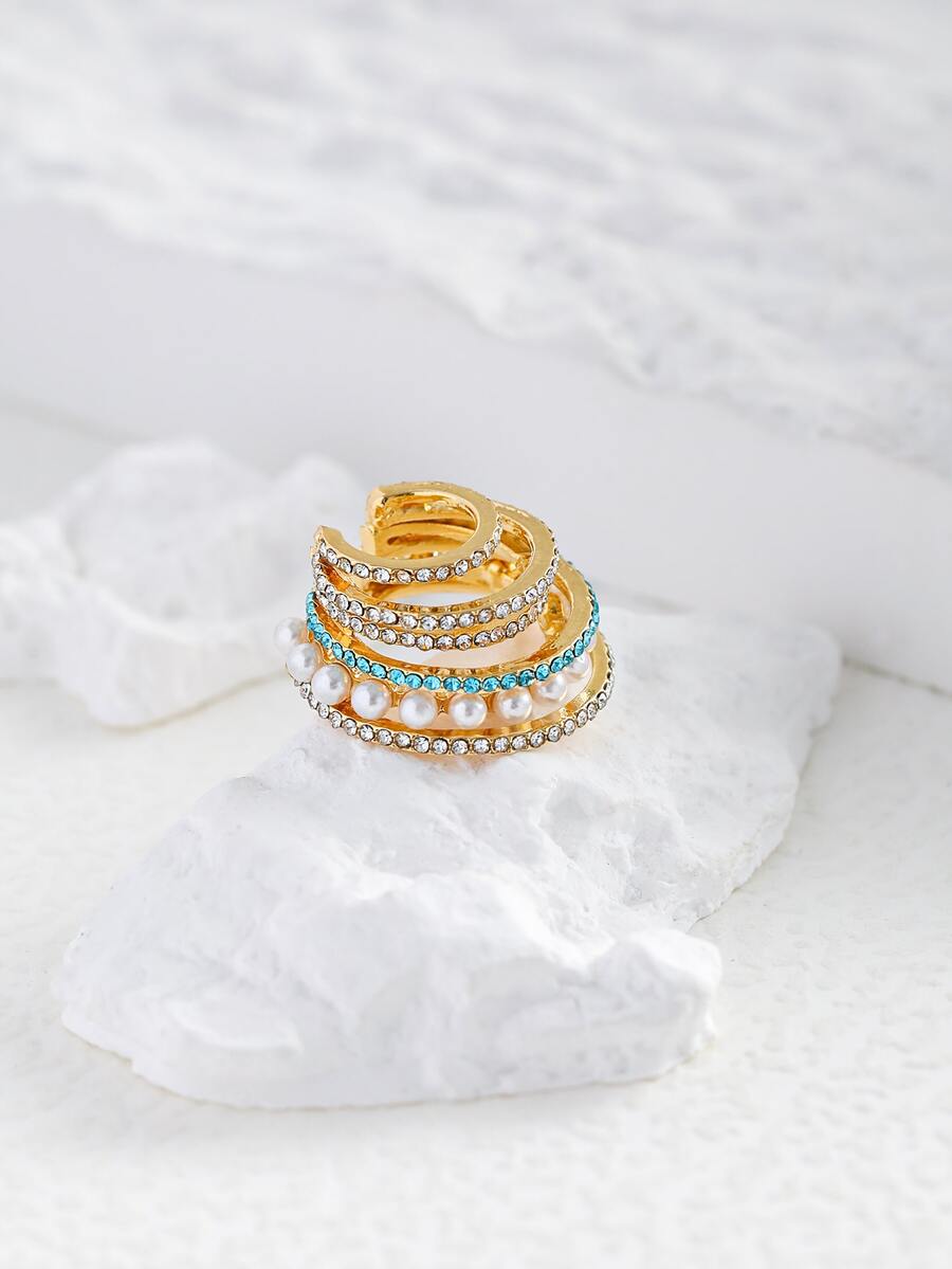 1pc Rhinestone & Faux Pearl Decor Ear Cuff