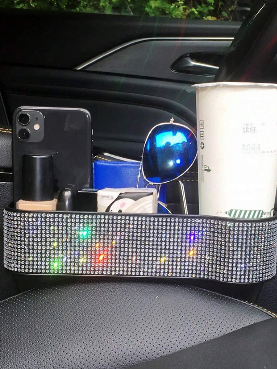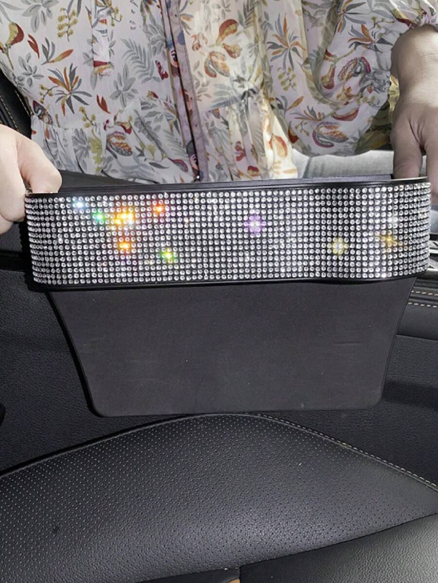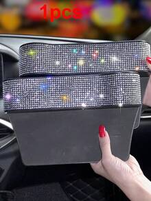 1pc Rhinestone Decor Car Storage Box