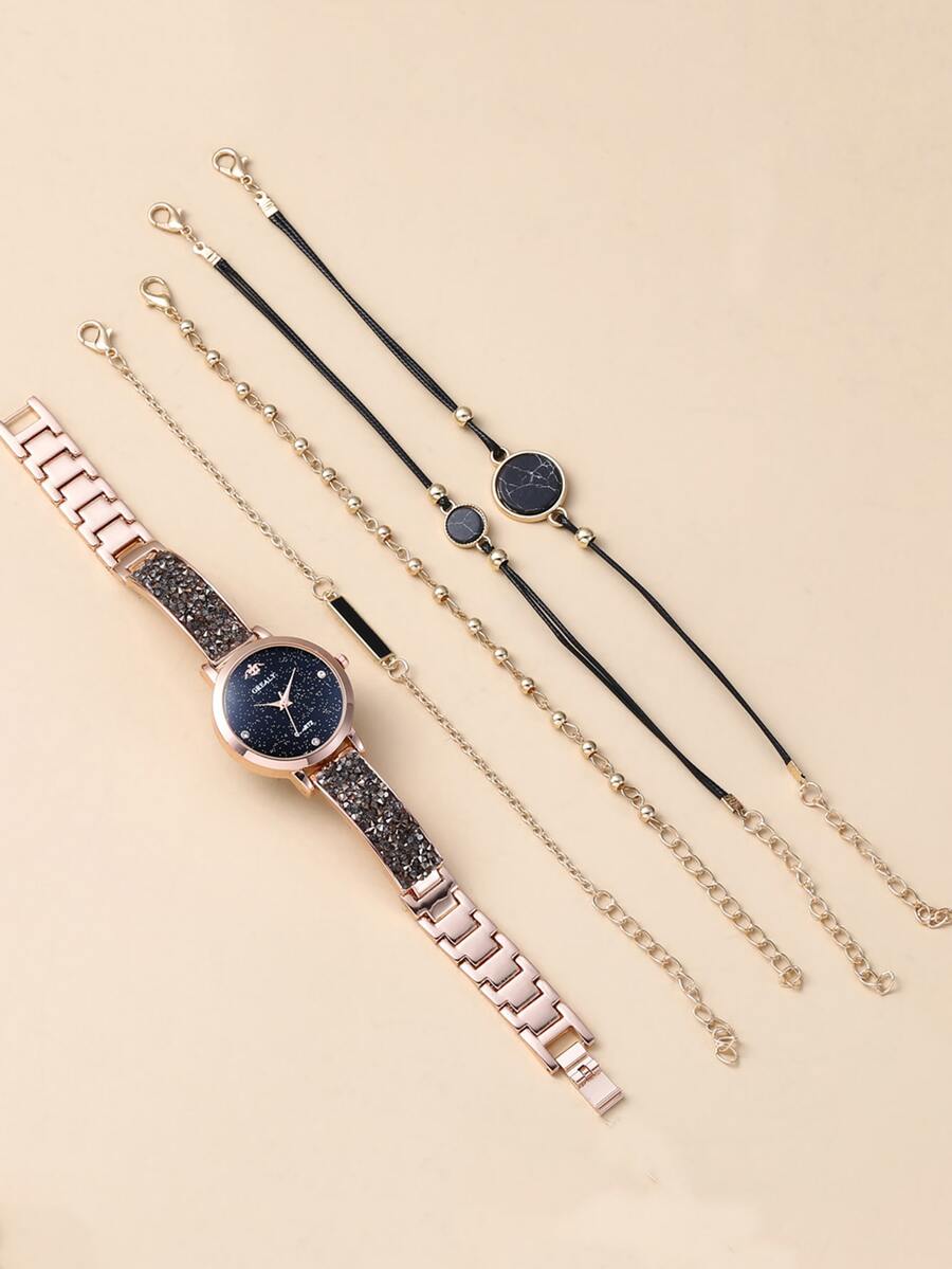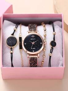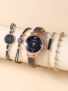 1pc Starry Sky Dial Round Pointer Watch & 4pcs Bracelet