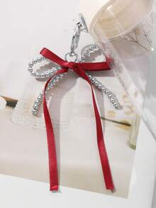 Kawaii 1pc Stylish Gothic Silver Beaded CCB Ribbon Bowknot & Heart Adjustable Lanyard ID Card Holder Charm Keychain, Suitable For Office Workers And Students, Perfect Gift Valentines, Halloween