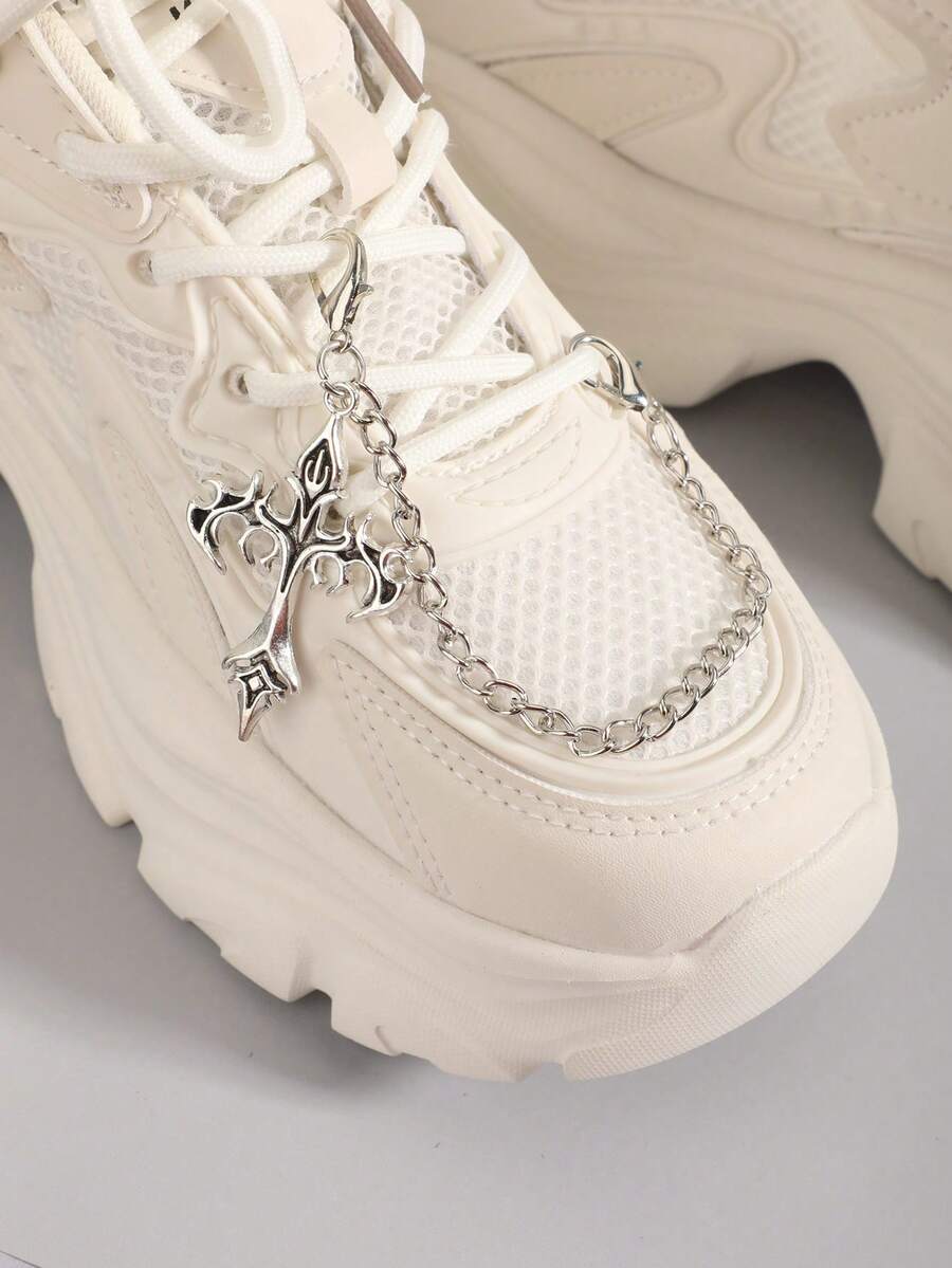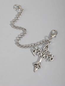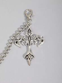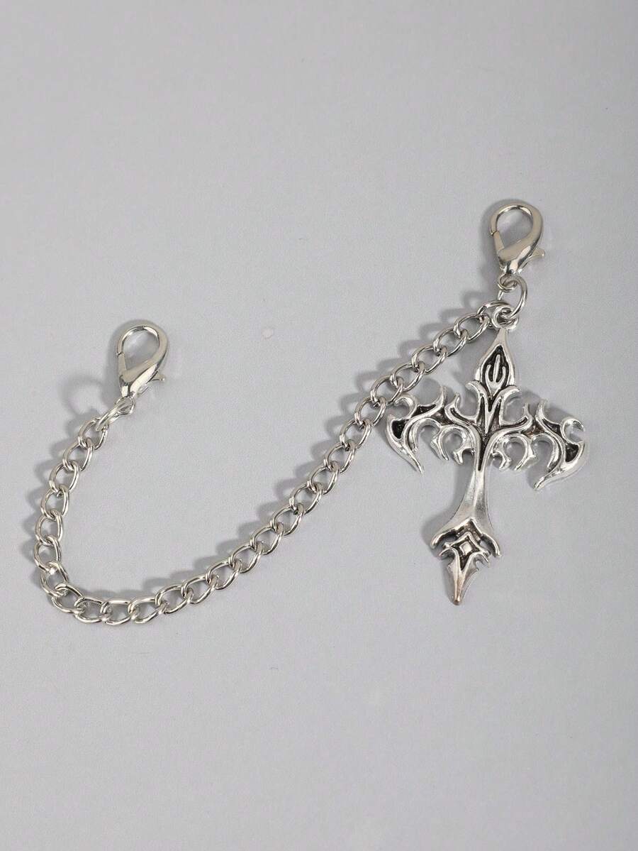 1pc Vintage Gothic Flame Cross Chain, Metal Heart Decor Chain, Crossbody Bag Strap Pendant, Suitable For Decorating Boots
