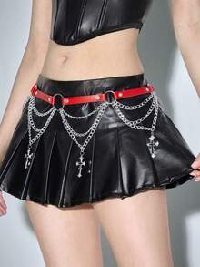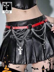 Goth 1pc Women's Black Hollow Star & Circle Decor Chain Belt, Punk Style Decoration For Daily Dress