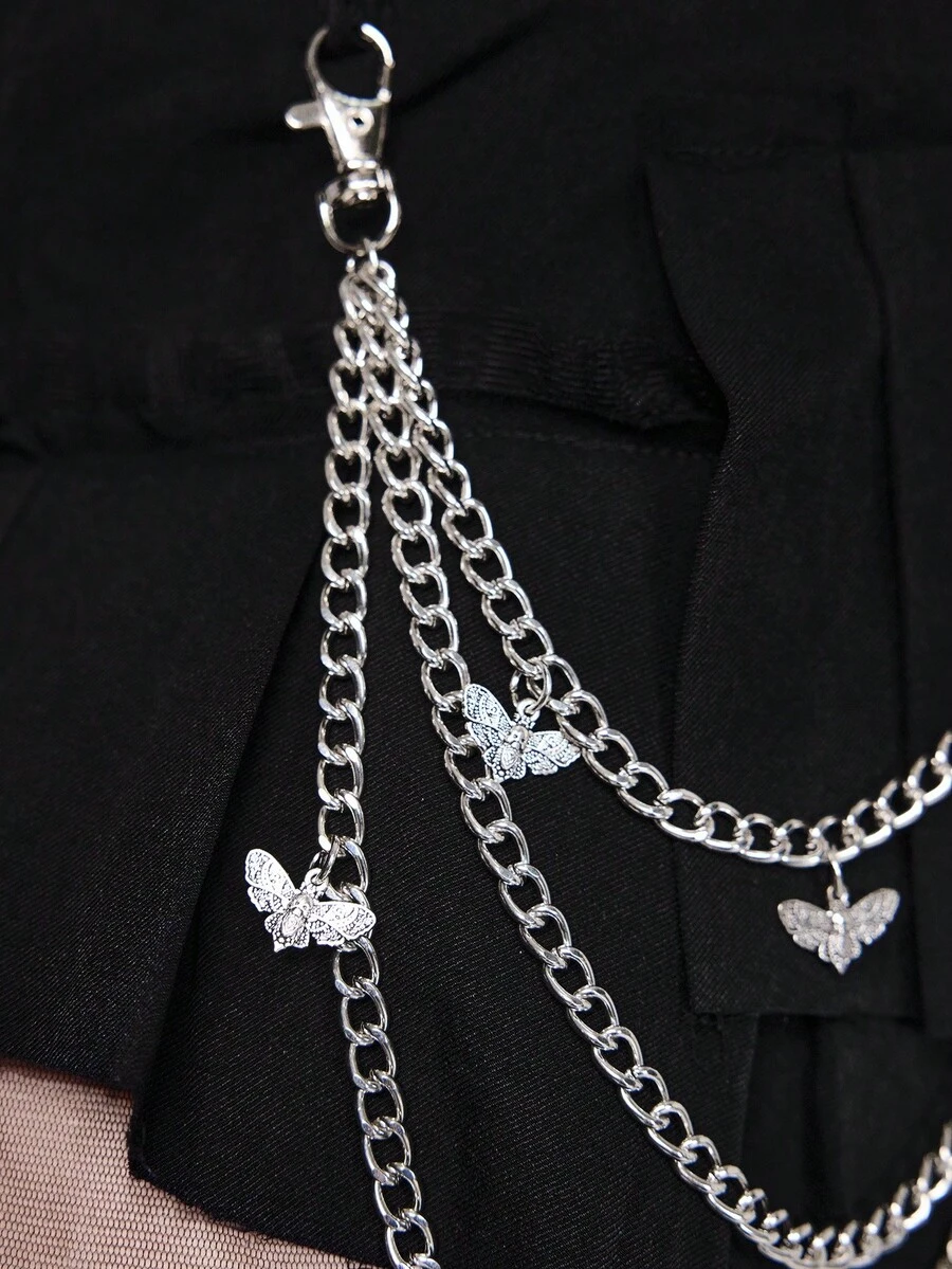 Grunge Punk 1pc Women's Silver Hollow Moth Decor Accessory, 3-Layer Cross Chain Decoration For Jeans, Dark Punk Style, Versatile For Daily Wear
