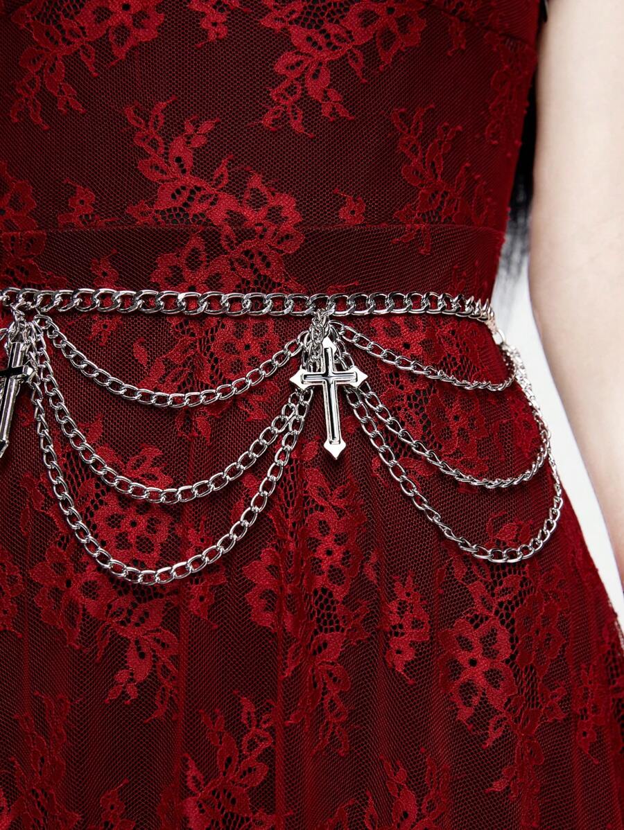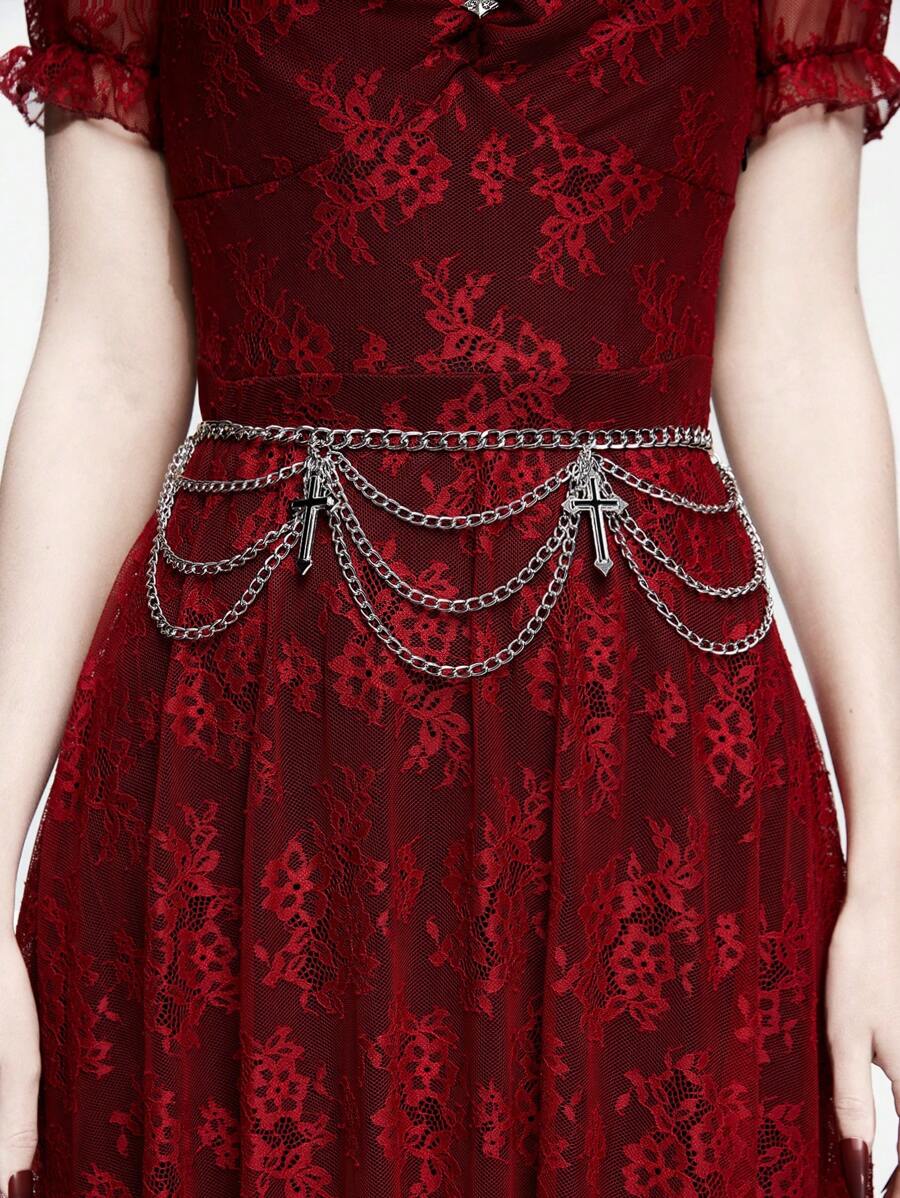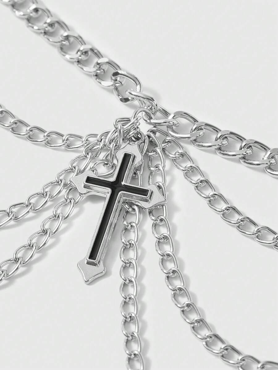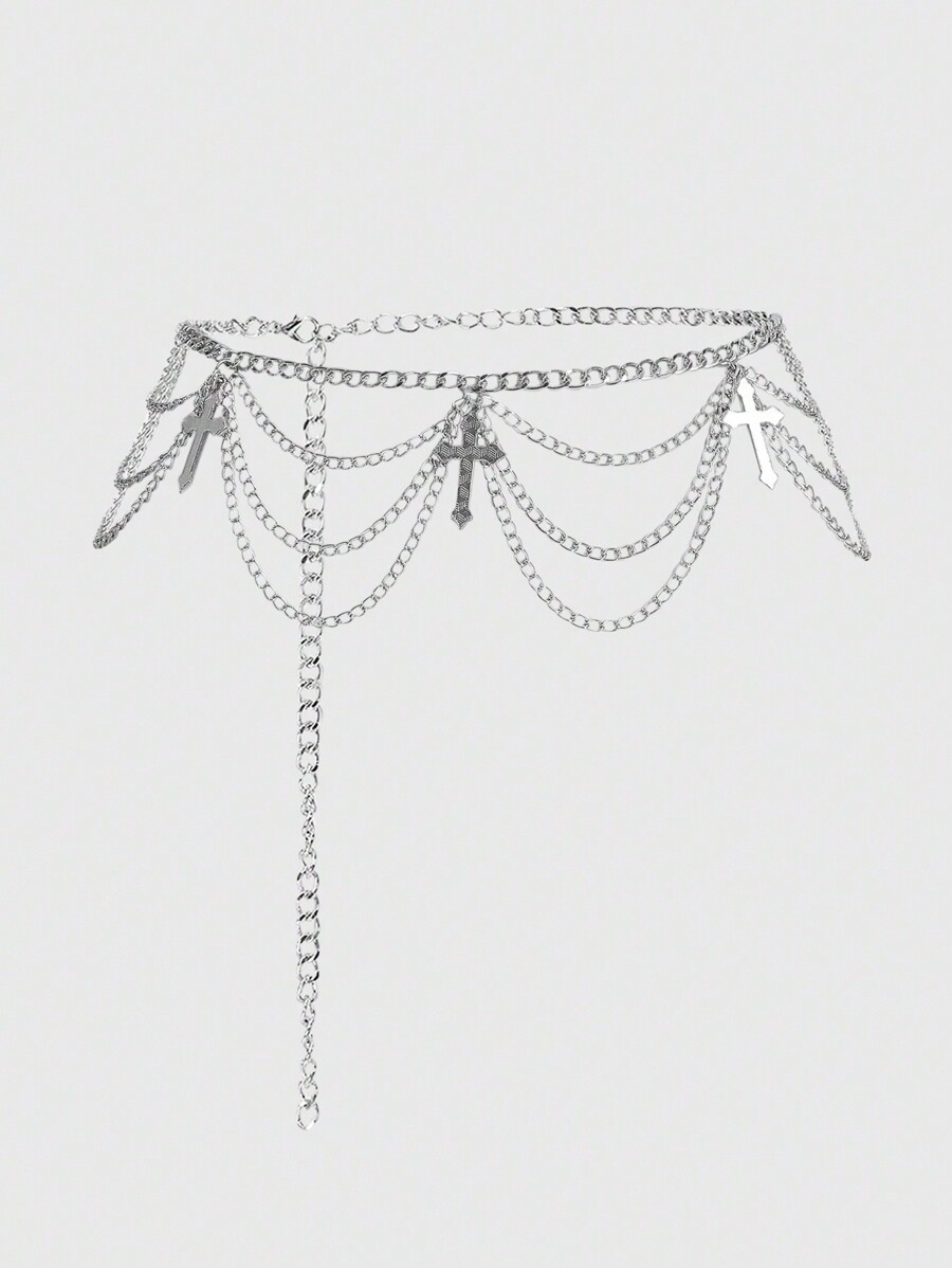 1pc Women Black & Silver Gothic Style Waist Chain With Cross Pendant And Triple Layer Chains, Great For Daily Wear, Halloween