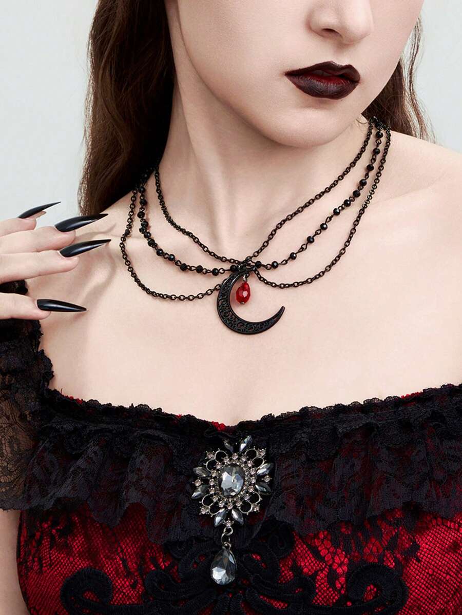 1pc Women Gothic Style Multi-Layer Tassel Necklace Jewelry For Halloween