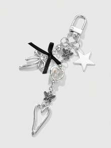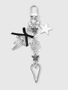 Kawaii 1pc Y2K Minimalist High-End Silver Butterfly Faux Pearl Hollow Heart Star Woven Bow DIY Keychain Bag Charm, Suitable For Women/Girls Daily Wear, Holiday Gift