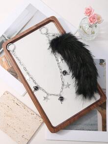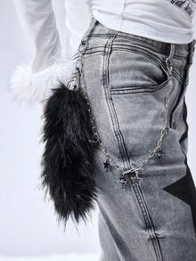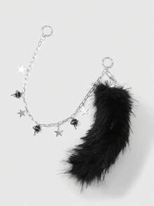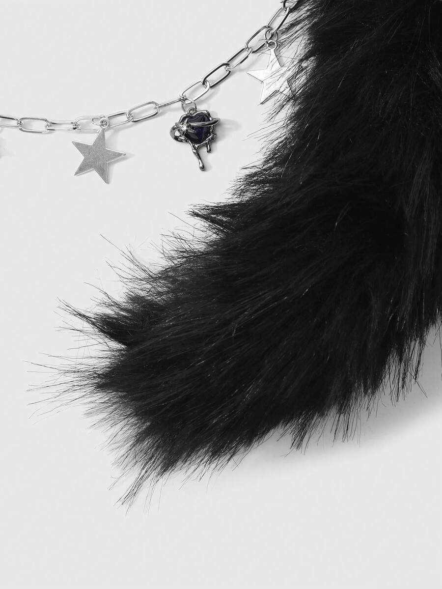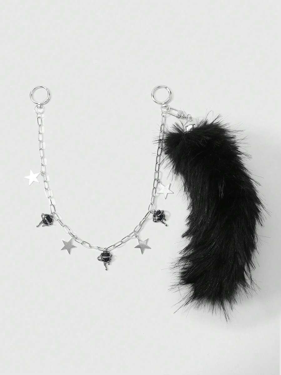 1pc Y2K Punk Goth Aesthetic Silver Hollow Chain Star Liquid Crystal Rhinestone Heart Pendant, Fluffy Faux Fur Wolf/Fox Tail Clip On For Women, Suitable For Daily Wear, Holiday Gift
