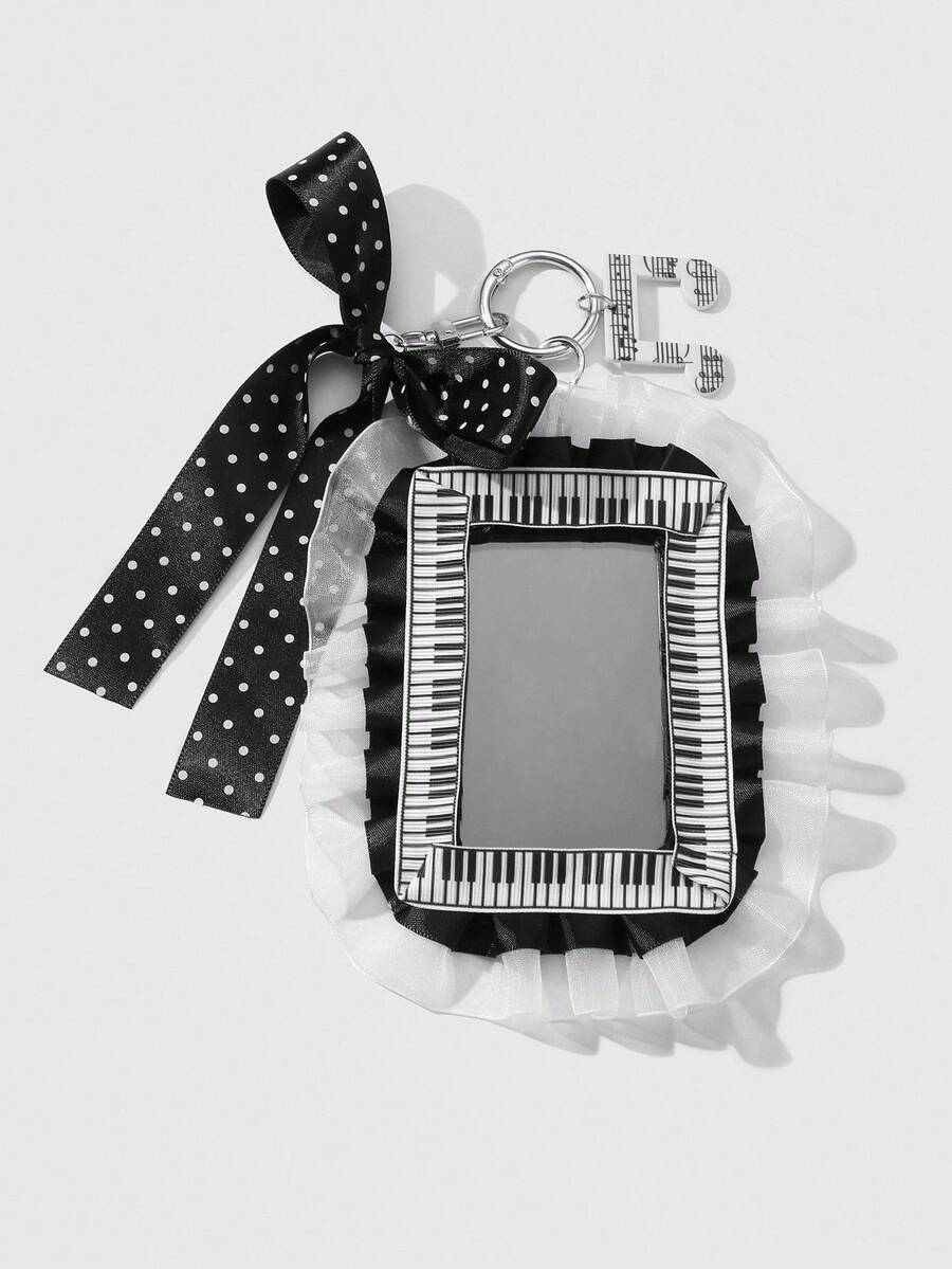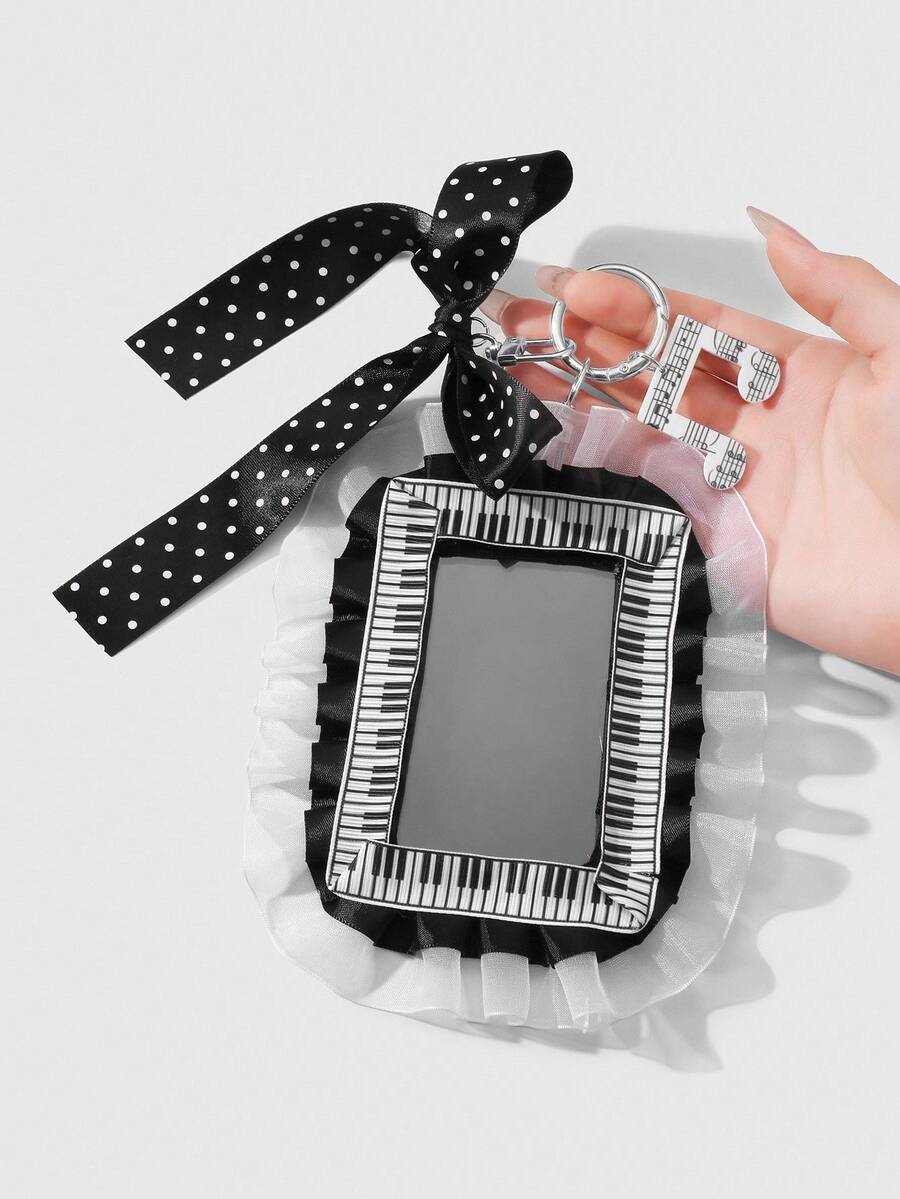 Kawaii 1pc Y2K Retro Chic Goth Style High-Quality Black Polka Dot Ribbon Bow, Music Note, Piano Key, Lace Mesh Floral Card Holder, DIY Keychain Bag Charm, Suitable For Office Workers, Students, Daily Wear, Holiday Gift