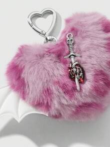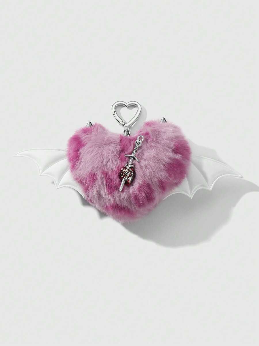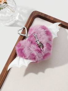 Kawaii 1pc Y2K Retro Punk Goth Style Brown Faux Fur Leopard Print Rivet 3D Heart Cross Pendant Keychain, Suitable For Women, Daily Wear Or Gift, Halloween