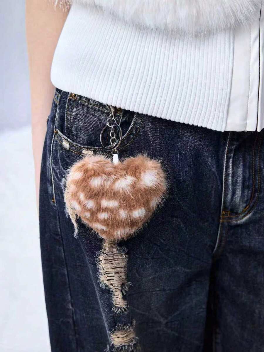 Kawaii 1pc Y2K Vintage Punk Chic High-End Faux Fur Leopard Print 3D Rivet Heart Crystal Hollow Cross DIY Keychain Bag Charm, Suitable For Women, Daily Wear, Holiday Gift