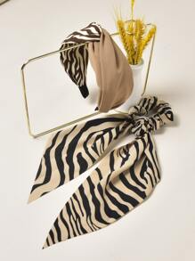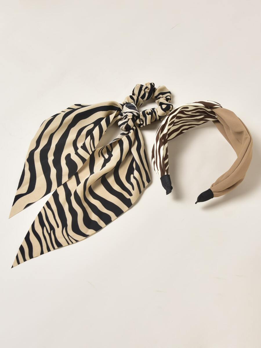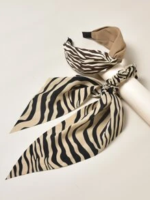 1pc Zebra Striped Scrunchie Scarf & 1pc Hair Hoop
