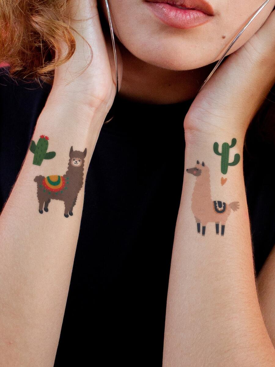 1sheet Cartoon Alpaca Tattoo Sticker