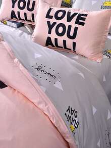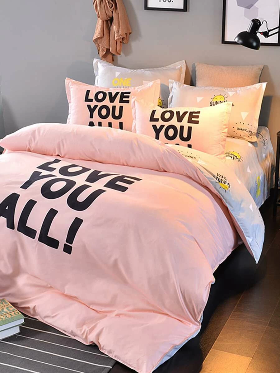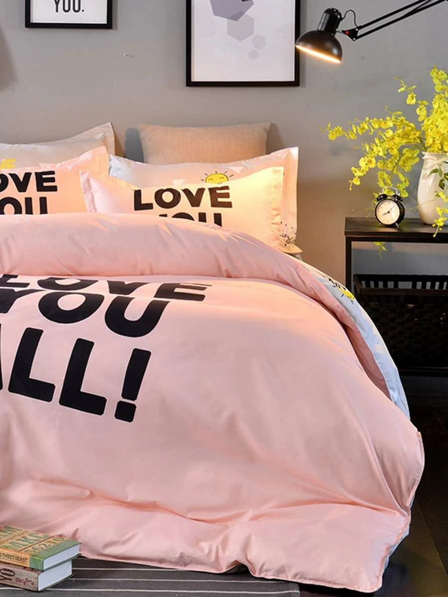 2.0m 4Pcs Slogan Print Duvet Cover Set