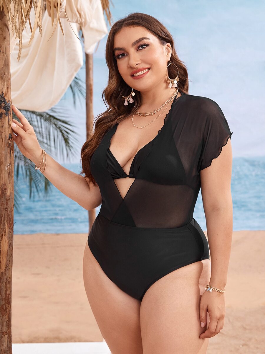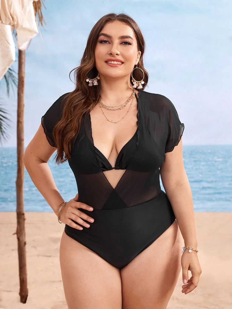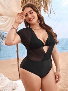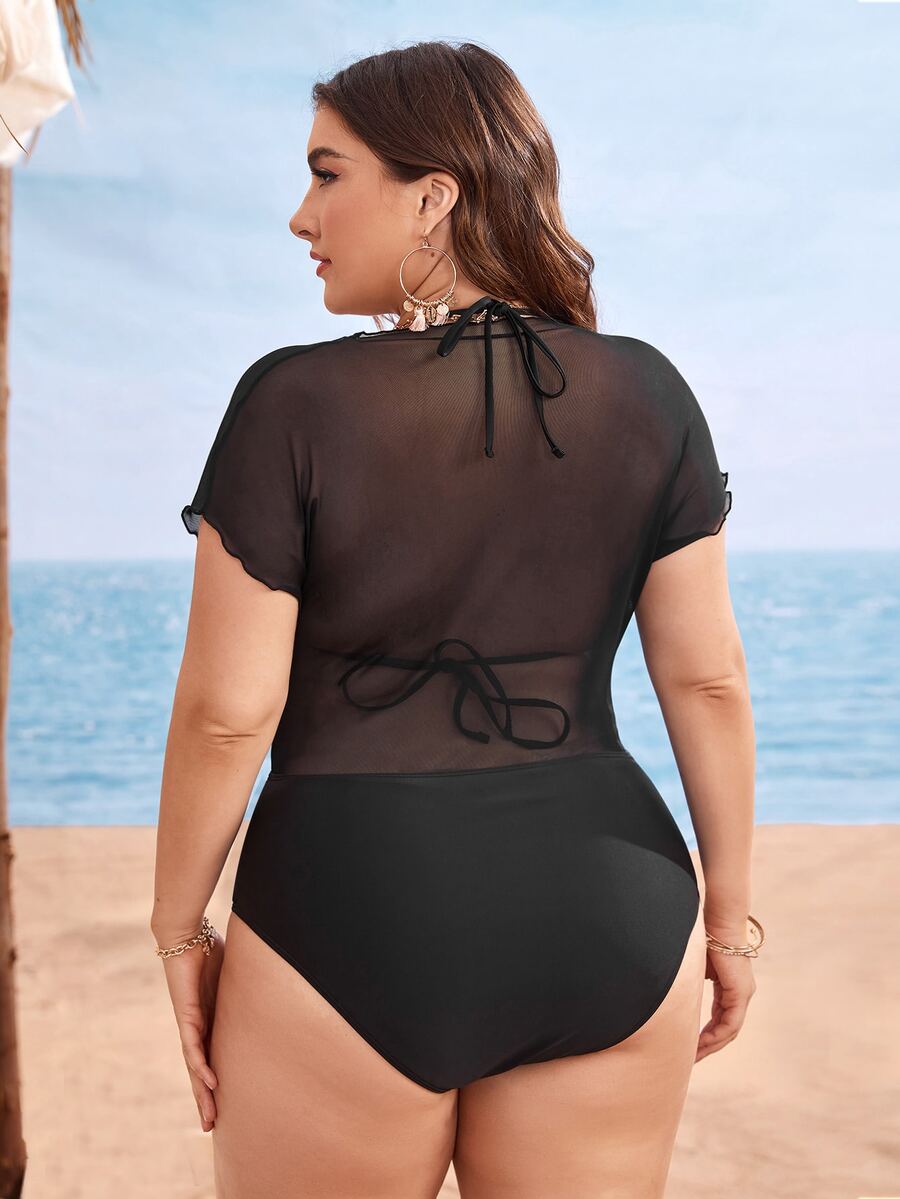 2 Packs Plus Size Contrast Mesh One Piece Swimsuit