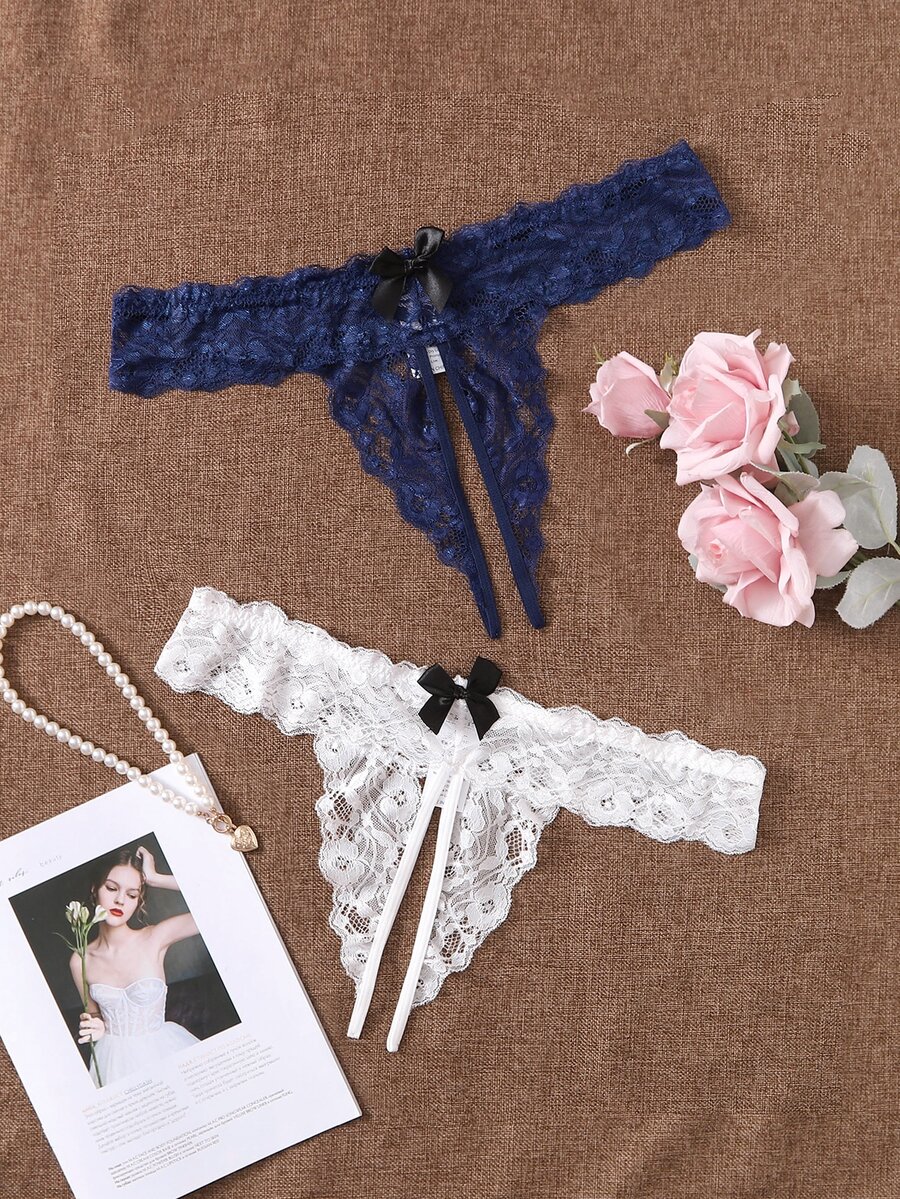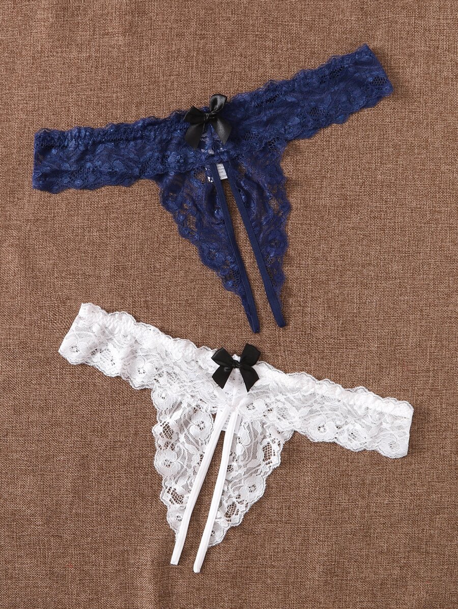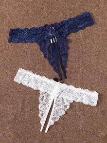 2 Packs Plus Size Floral Lace Crotchless Panty Set