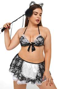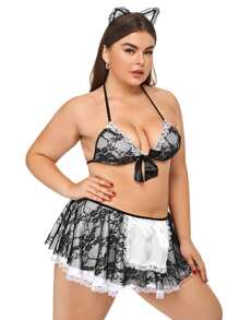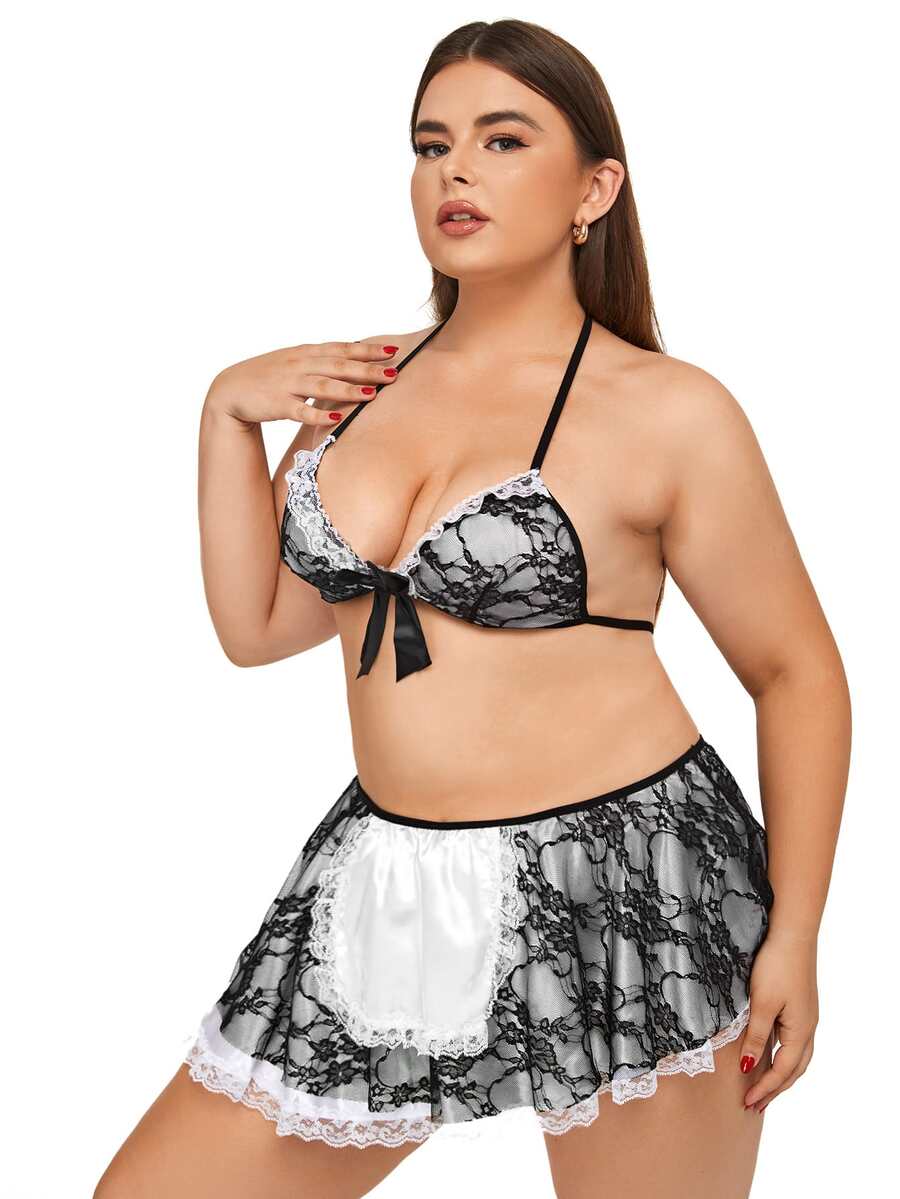 2 Packs Plus Size Lace Overlay Maid Costume Set