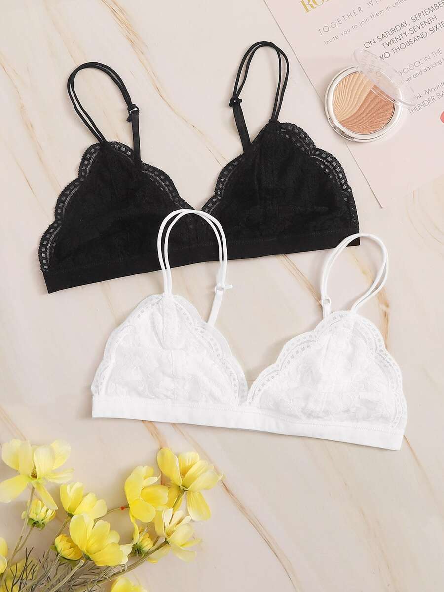 2 Packs Scallop Lace Bra Set
