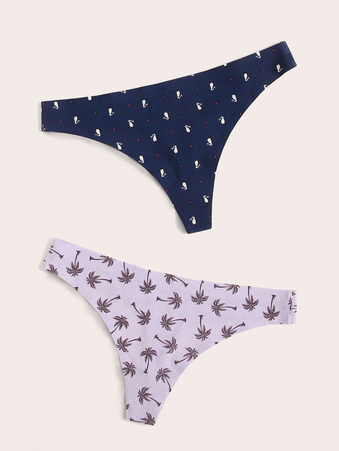 2 Packs Swan & Palm Tree Random Print Seamless Panty Set