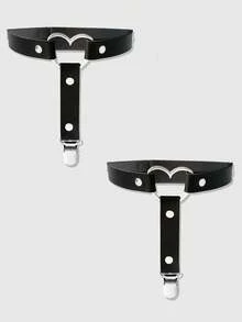 Goth 2 Pieces Women's Garter Belt With Black Chain, Five-Pointed Star, Hollow Cross Decor, Gothic Style Leg Garters For Dress, Skirt, Everyday Versatile, Halloween