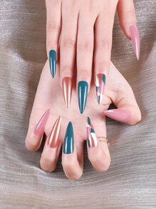 24Pcs Geometric Print Fake Nail & 1Sheet Tape & 1Pc Nail File Press On Nails Nail Supplies Nails