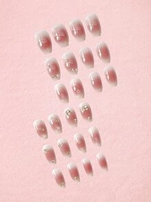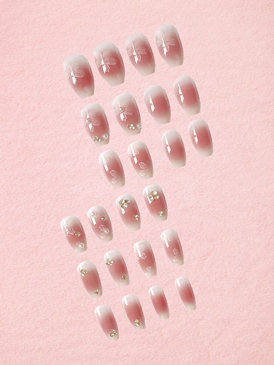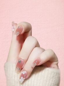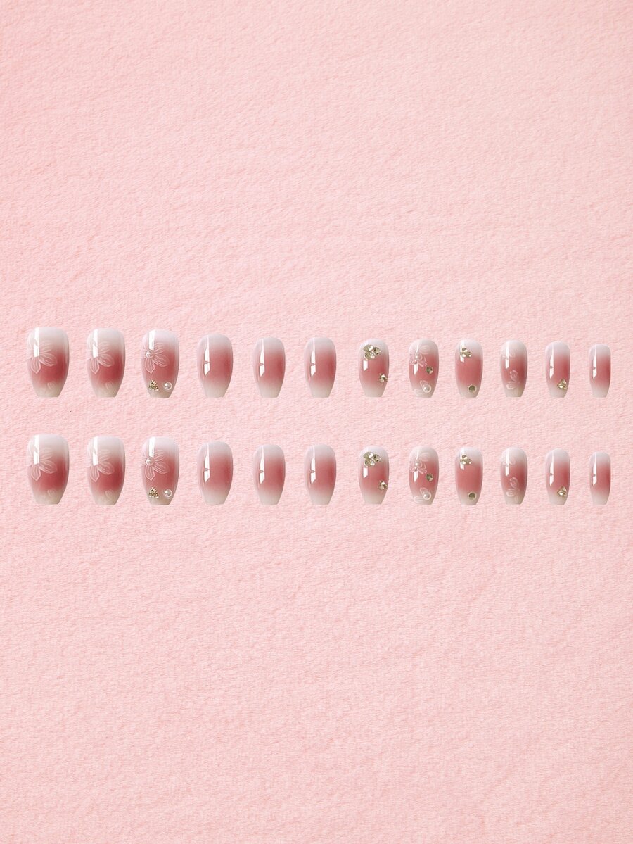24pcs Coffin 3D Rhinestone Decor Fake Nail & 1sheet Tape
