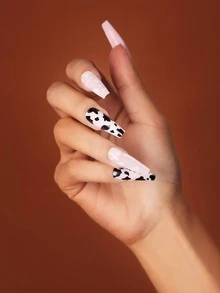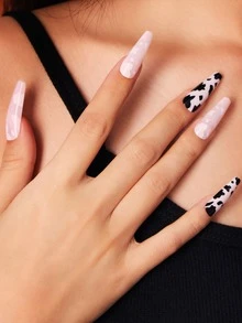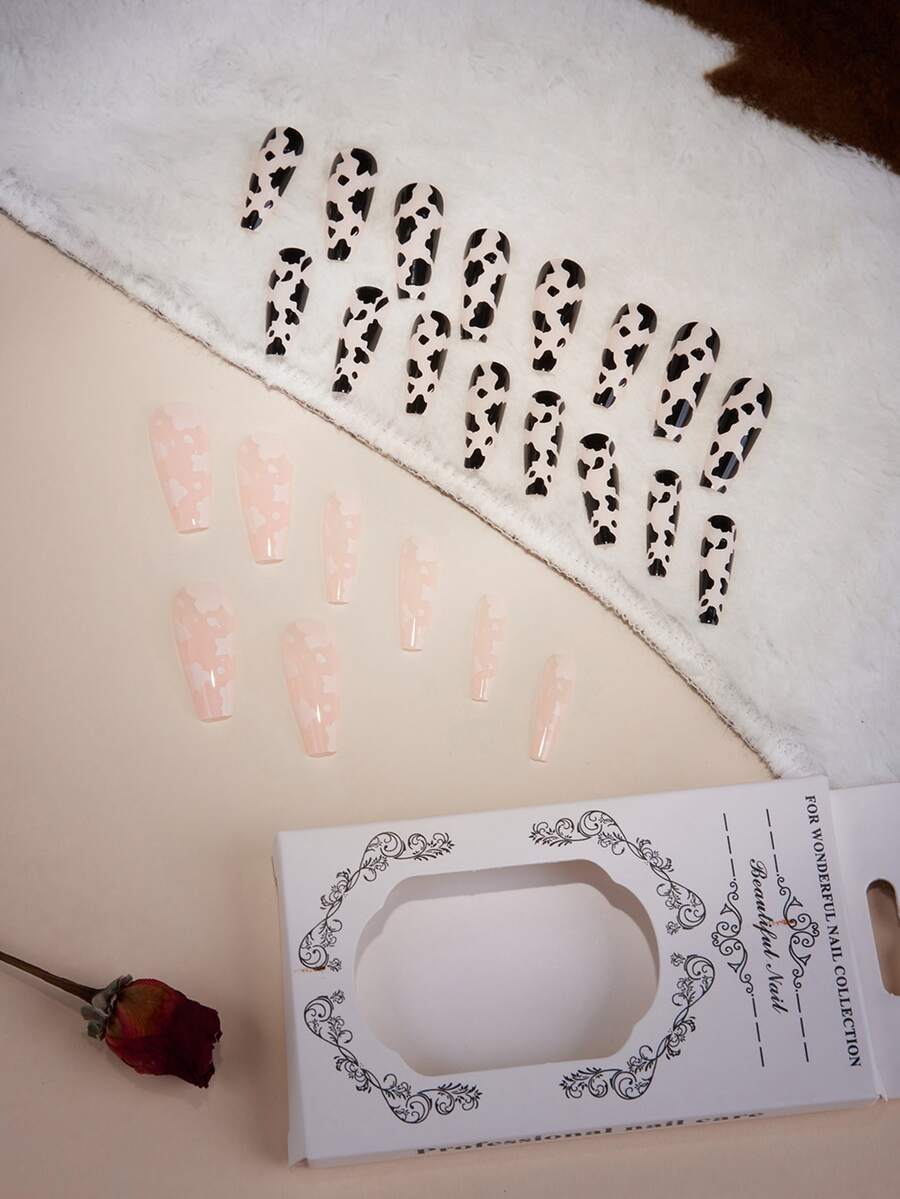 Goth 24pcs Cow Print Fake Nail & 1sheet Tape
