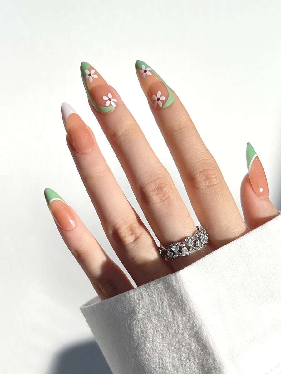 24pcs Flower Print Fake Nail & 1sheet Tape & 1pc Nail File