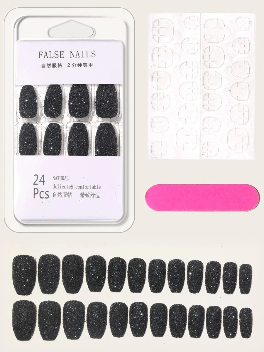 24pcs Glitter Fake Nail & 1sheet Tape & 1pc Nail File