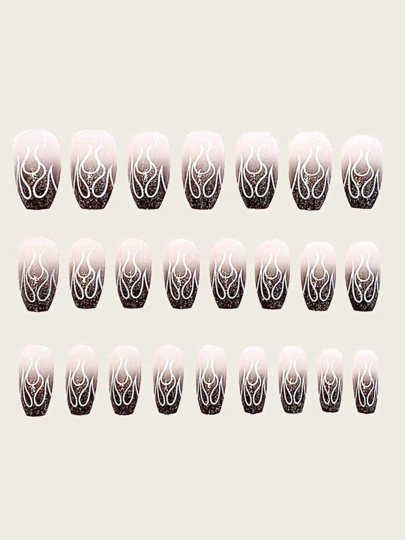 24pcs Glitter Flame Fake Nail & 1sheet Tape
