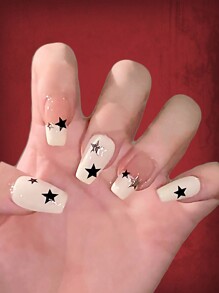 Grunge Punk 24pcs Long Coffin Star Colorblock Fake Nail Kit