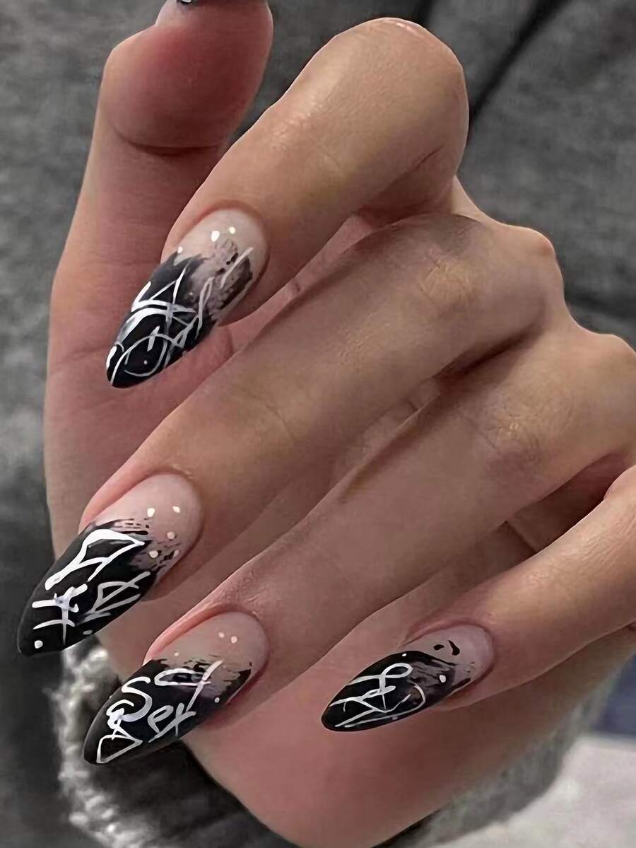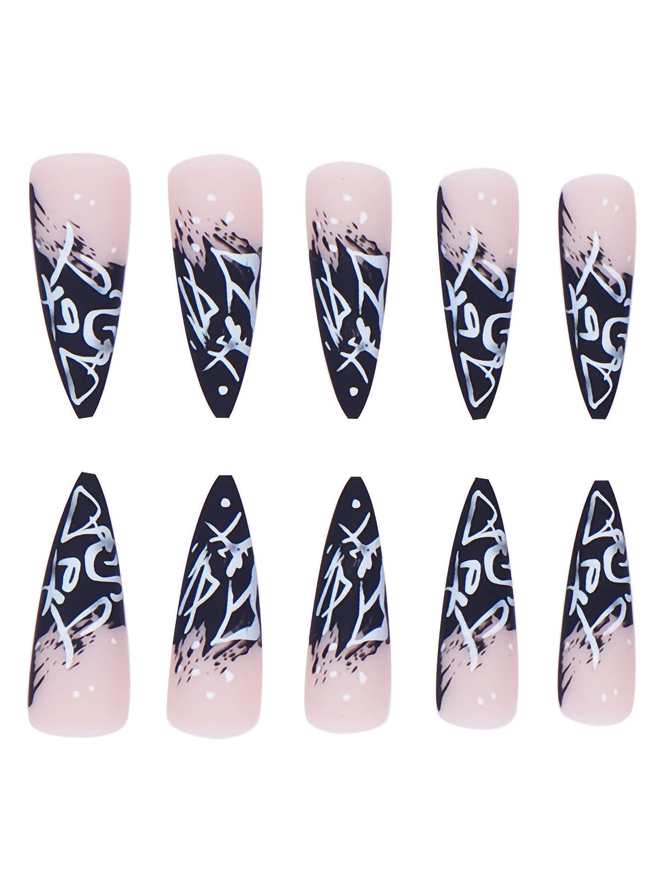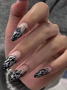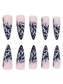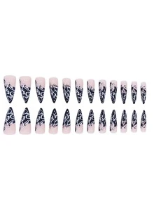 24pcs Long Stiletto Colorblock Fake Nail & 1sheet Tape