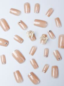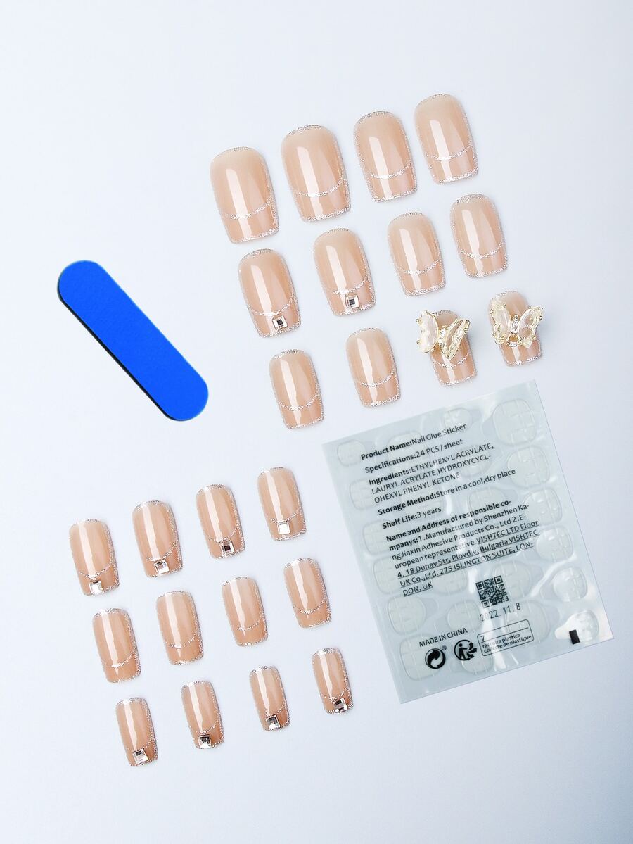 24pcs Short Square Fake Nail & 1pc Nail File & 1sheet Tape