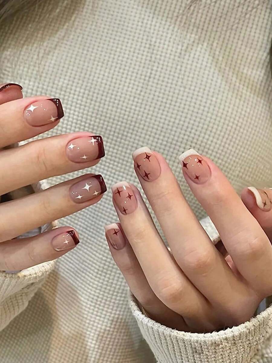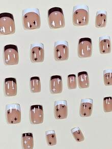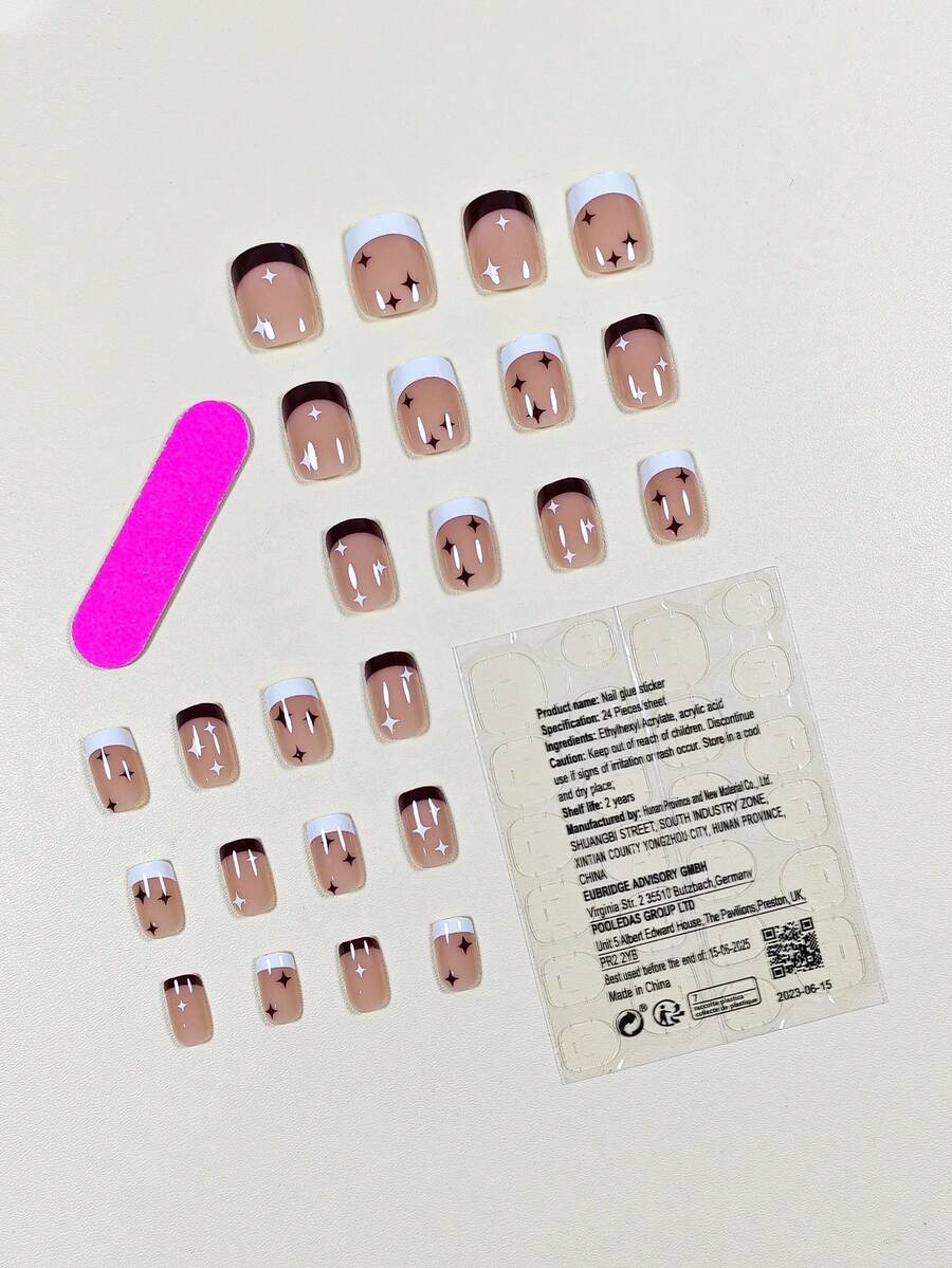 24pcs Short Square Star Pattern Fake Nail & 1pc Nail File & 1sheet Tape