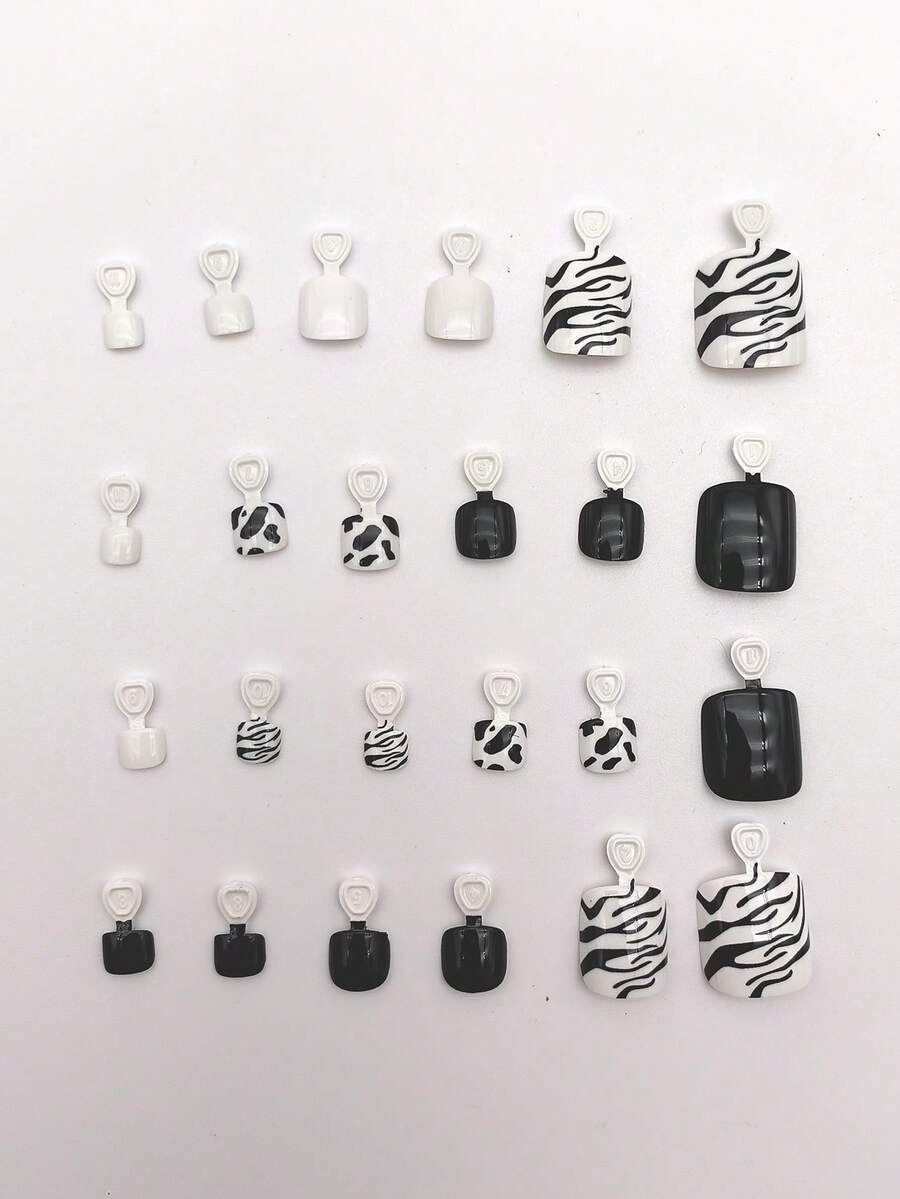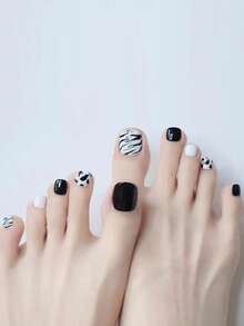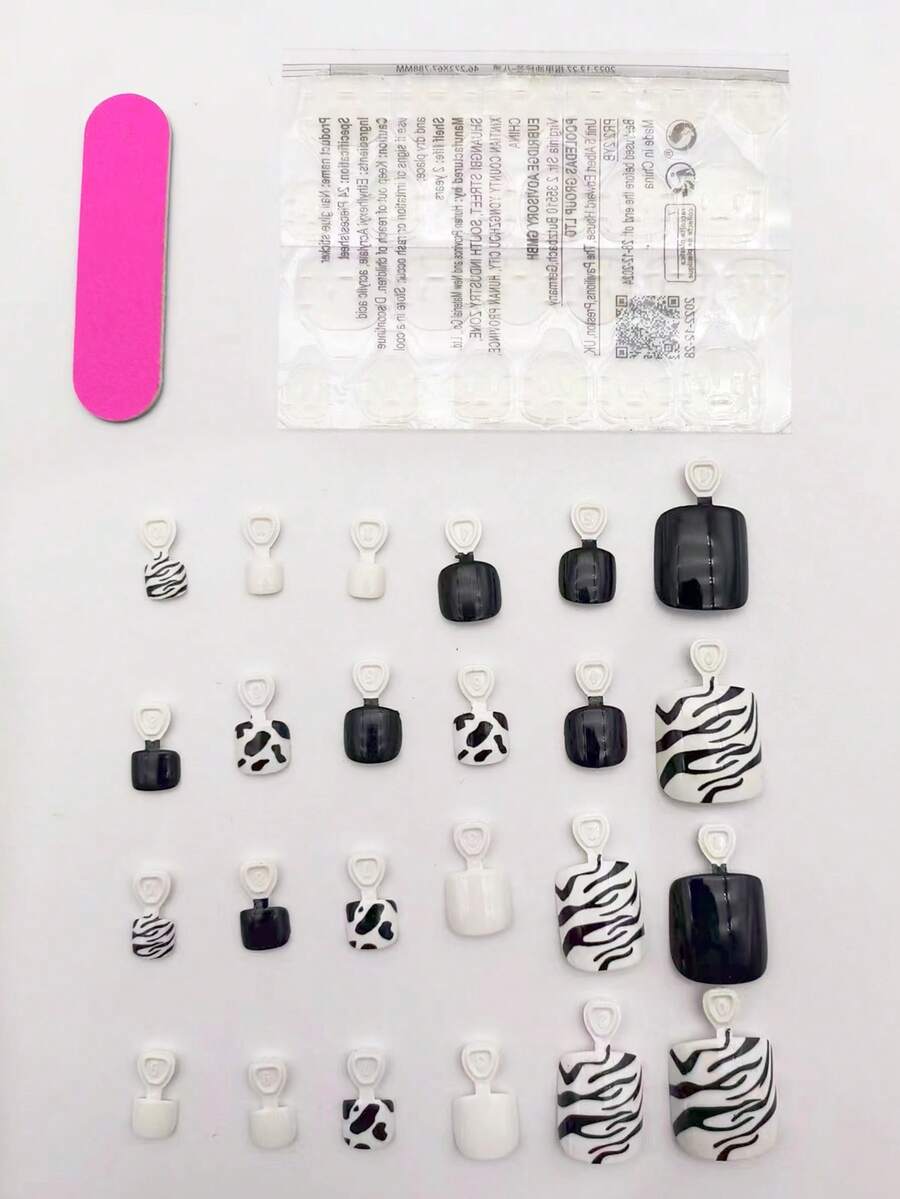 24pcs Short Square Zebra Striped Fake Toenail & 1sheet Tape & 1pc Nail File