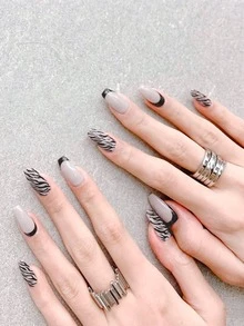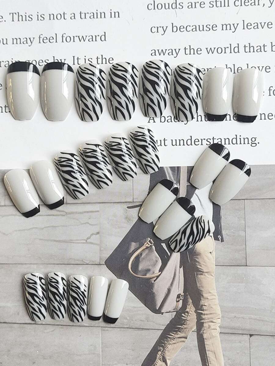 24pcs Zebra Pattern Fake Nail
