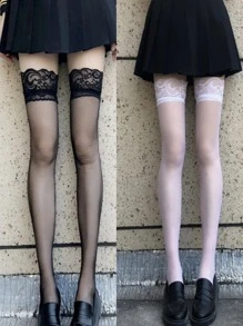 2pairs Contrast Lace Over The Knee Socks