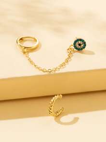 2pcs Chain & Rhinestone Decor Earrings