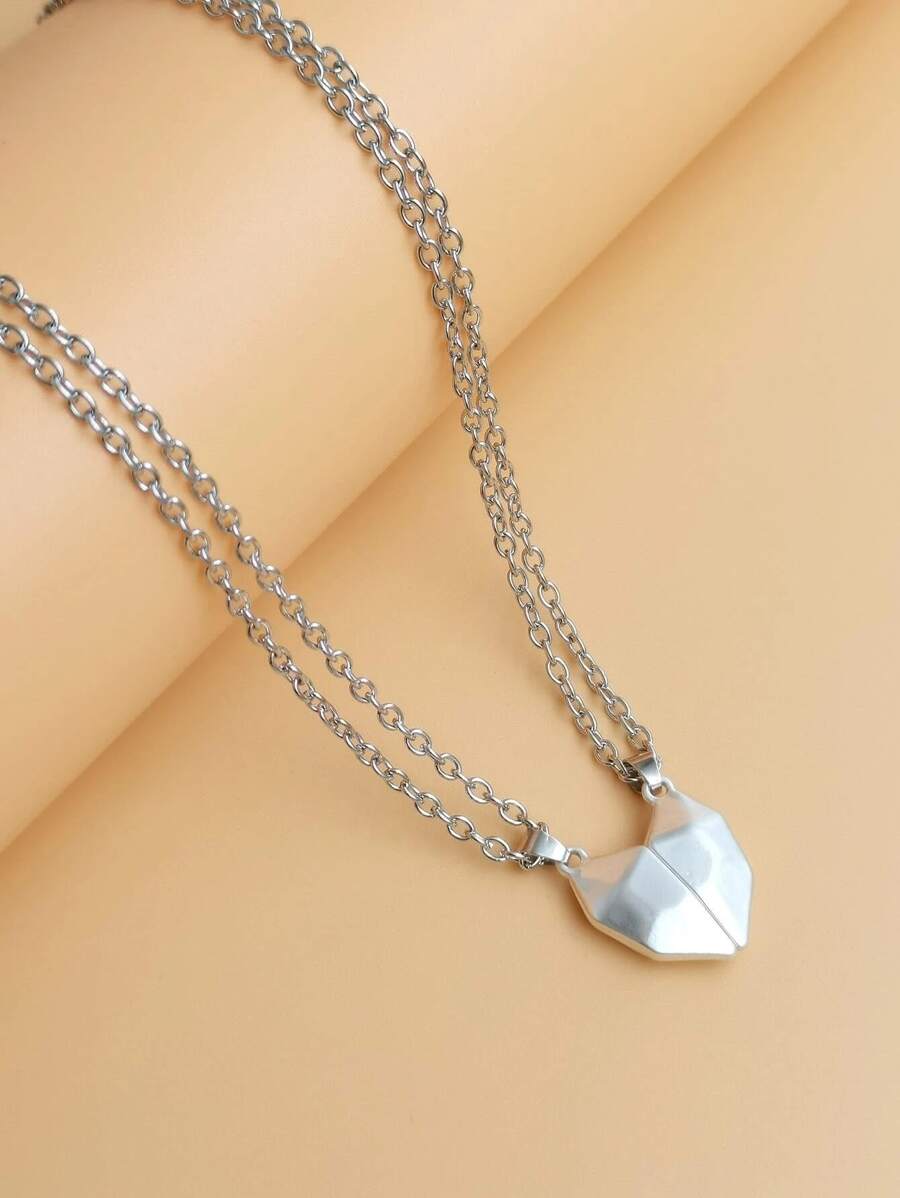 2pcs Couple Magnetic Heart Pendant Necklace