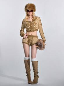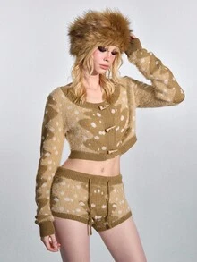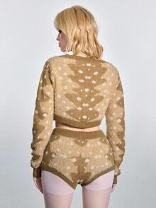 2pcs Fairycore Women Deer Pattern Cropped Knitted Sweater Set