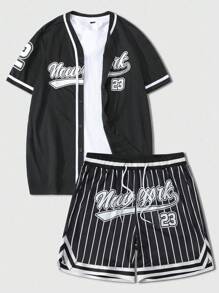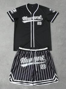 Street Life 2pcs Men's City Name Slogan Print Shirt & Sports Shorts Set