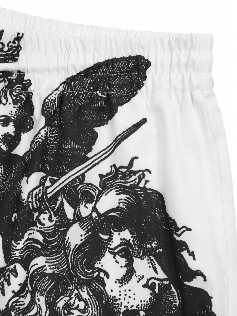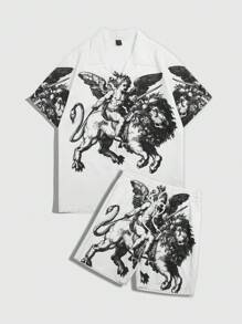 2pcs Men Retro Print Short Sleeve Shirt & Shorts Set